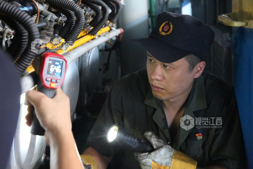 进入暑期,南昌气温日益攀升,部分铁路老旧内燃机车因高温影响易出现惯性故障,为保障机车质量稳定可靠,中国铁路南昌局集团公司向塘机务段机车检修职工钻进狭窄闷热的内燃机车“腹中”,针对各关键部件仔细检查检修,即便检车过程如同“蒸桑拿”,汗水湿透全身,也要坚决确保上线机车质量过硬。