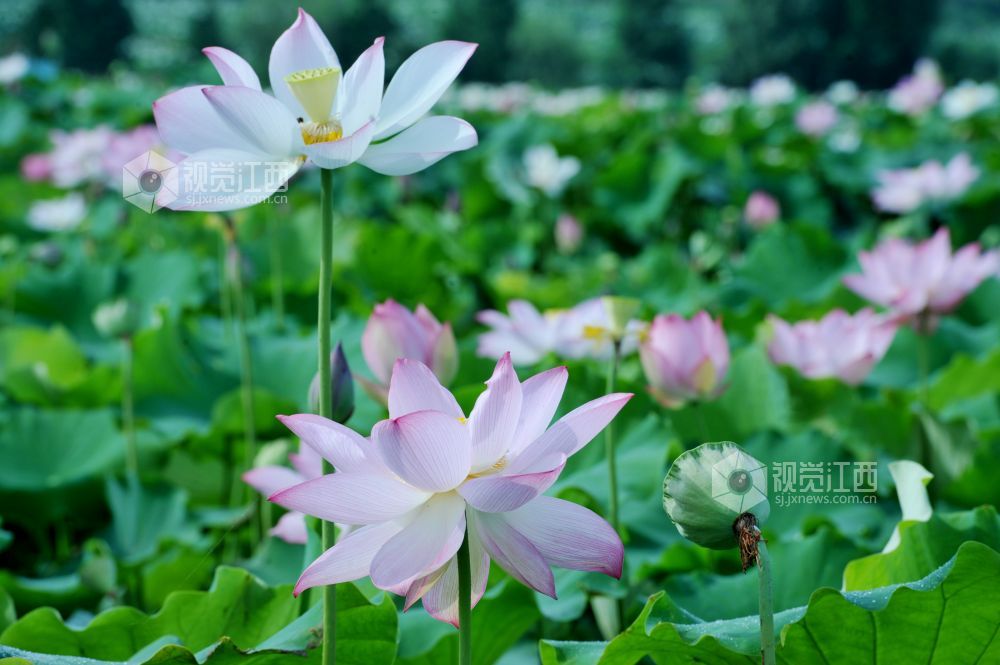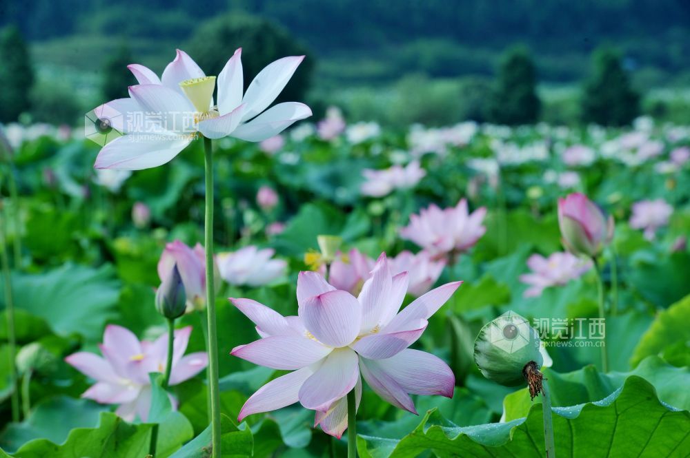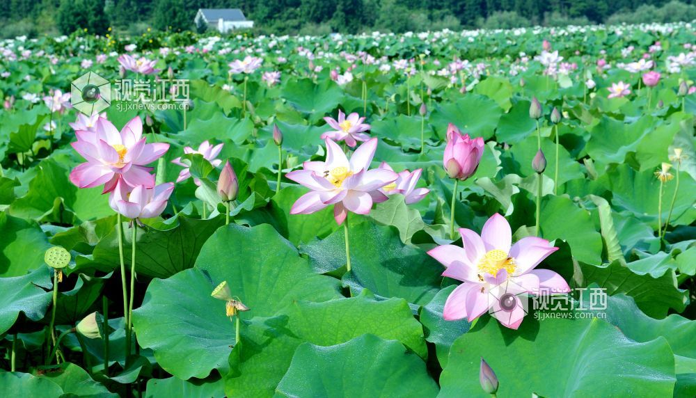 在素有“中国白莲之乡”的江西省广昌县各乡镇,每年从6月至8月,11万亩太空莲花先后竞相开放。一朵朵艳丽的荷花犹如一个刚刚出浴的少女,出污泥而不染,吸引来自全国各地的游客和摄影家们纷纷前来拍花赏荷。