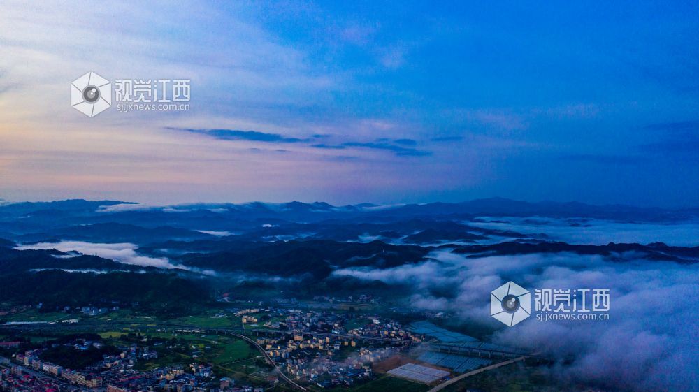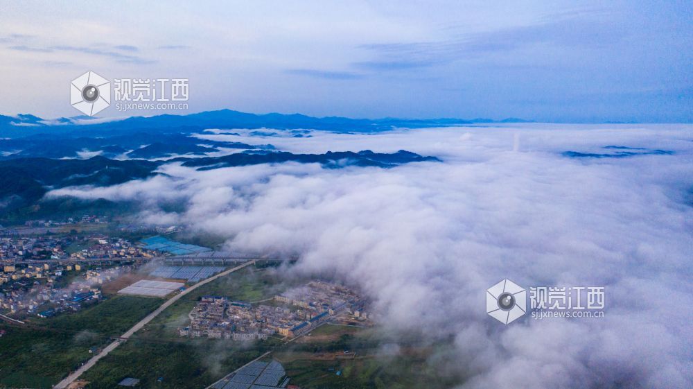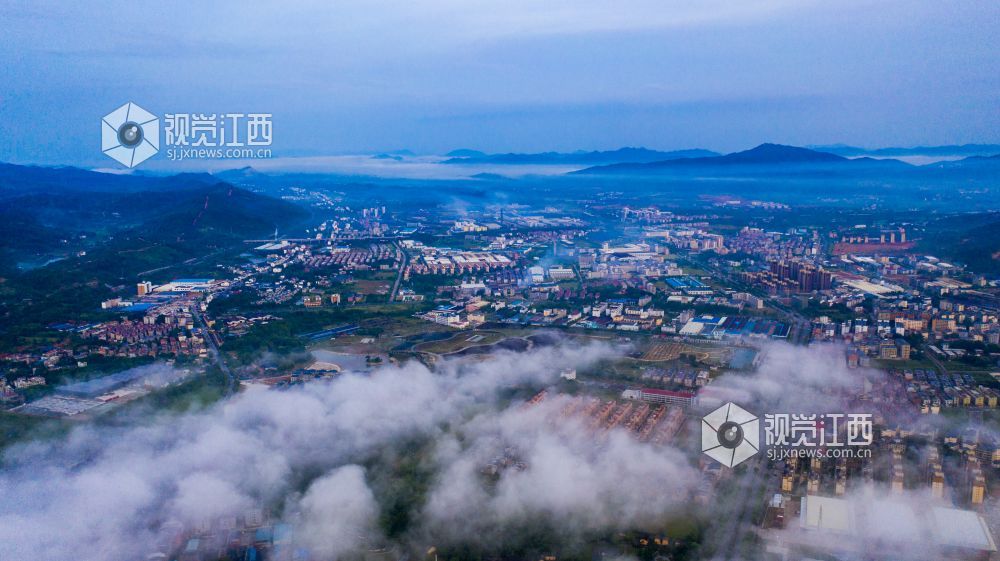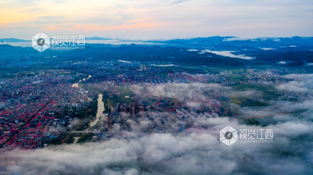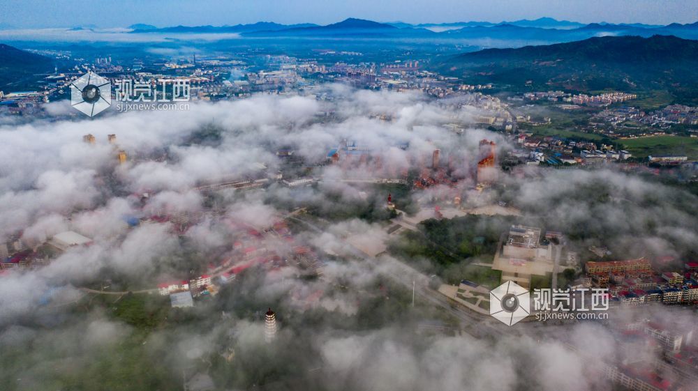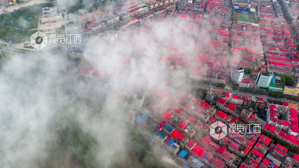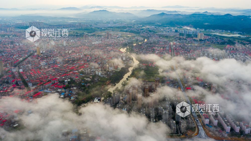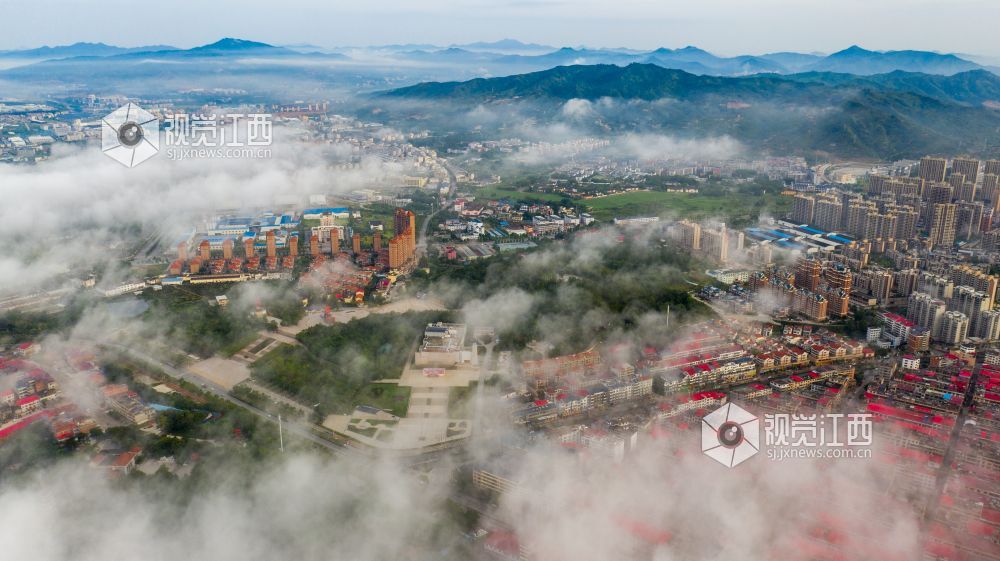 2012年7月16日清晨,江西省赣州市瑞金市上空云雾缭绕,城市若隐若现,给这座红色故都增添美丽色彩,也给酷暑中的人们送来难得清凉天气。