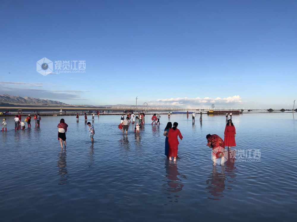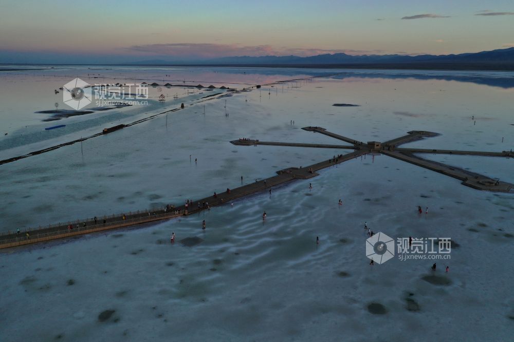 这是2021年7月17日拍摄的青海茶卡盐湖的画面。