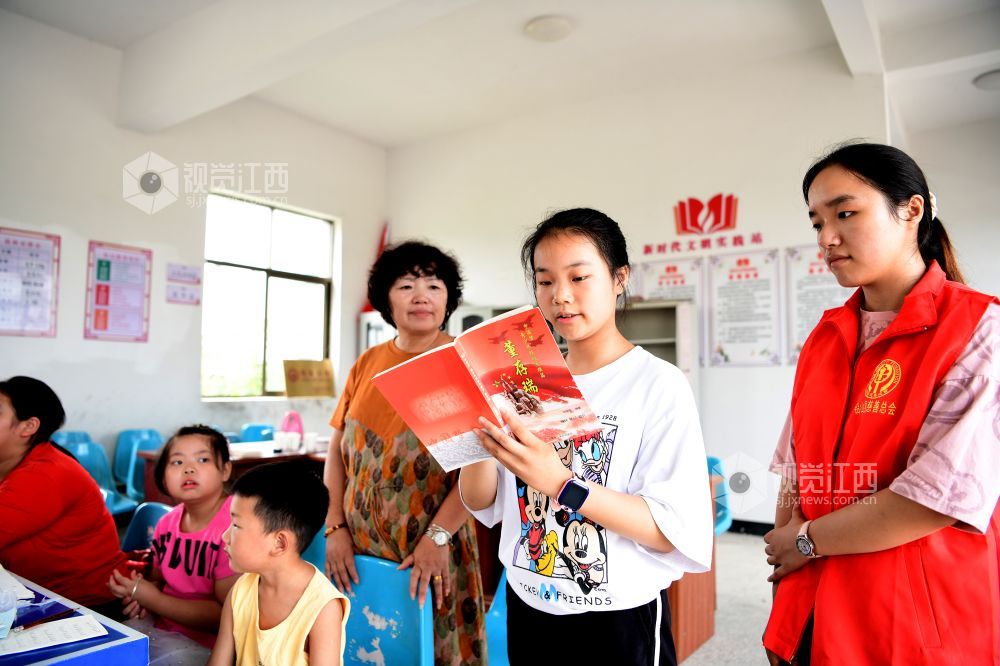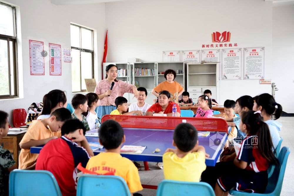 今年,铅山县充分发挥村级新时代文明实践站作用,引导返乡大学生当志愿者,为乡村儿童开展作业辅导、体育、美术、安全、讲红色故事、心理疏导等课程和互动游戏,丰富了乡村儿童的暑假生活。