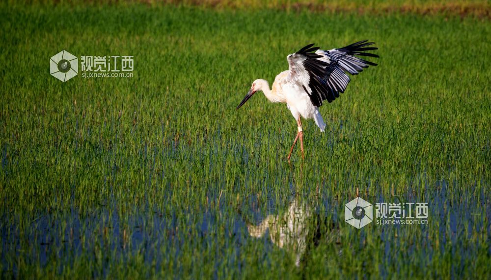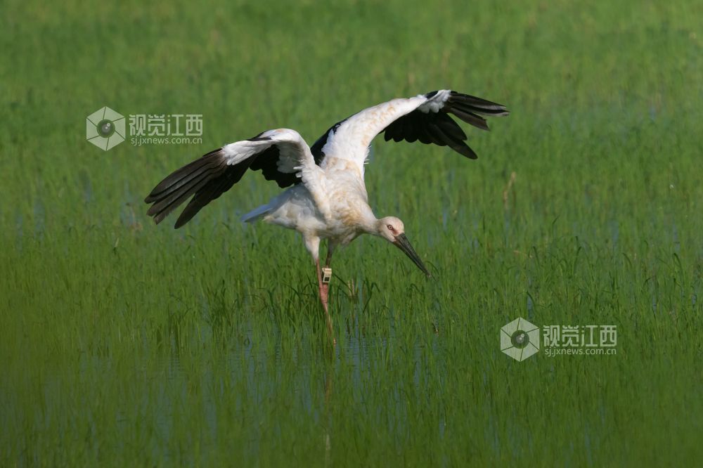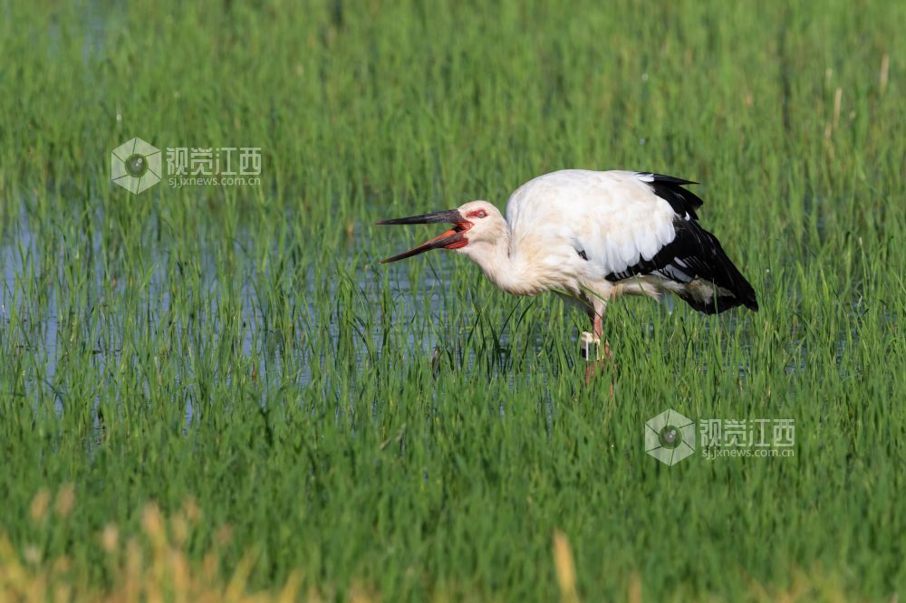 九江市野保专家介绍,东方白鹳属大型涉禽,体态优美,是国家一级重点保护动物。一般只在秋、冬季在长江中下游湿地湖泊越冬,此次夏季在瑞昌赤湖湿地观测到它们,在整个九江地区尚属首次。珍稀鸟类成为留鸟在此栖息,充分说明了九江的生态环境持续向好,赤湖水质优良。