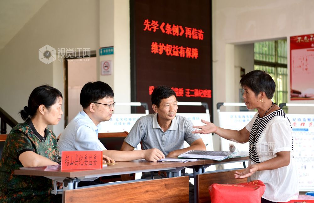 2021年7月21日,在江西省上饶市铅山县汪二镇,该县纪委县监委干部在接待来访群众。