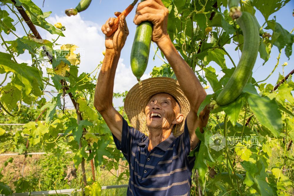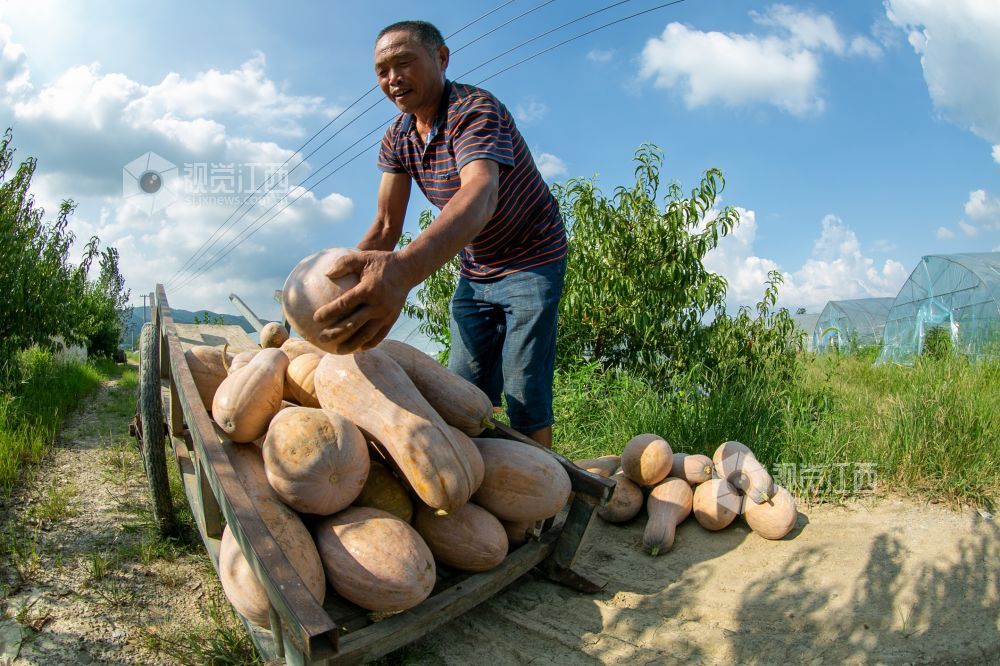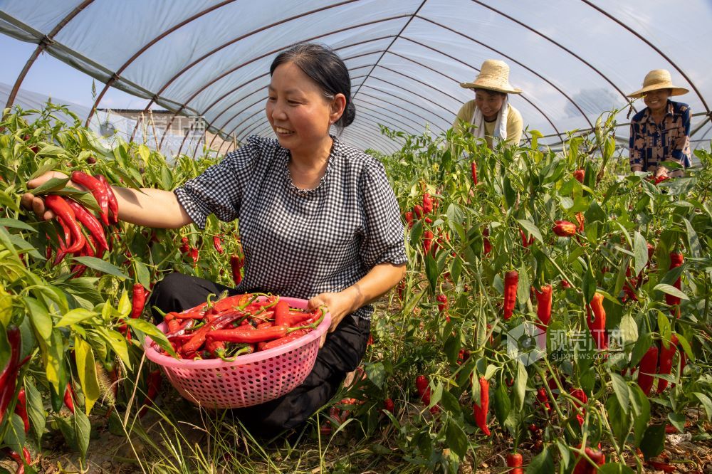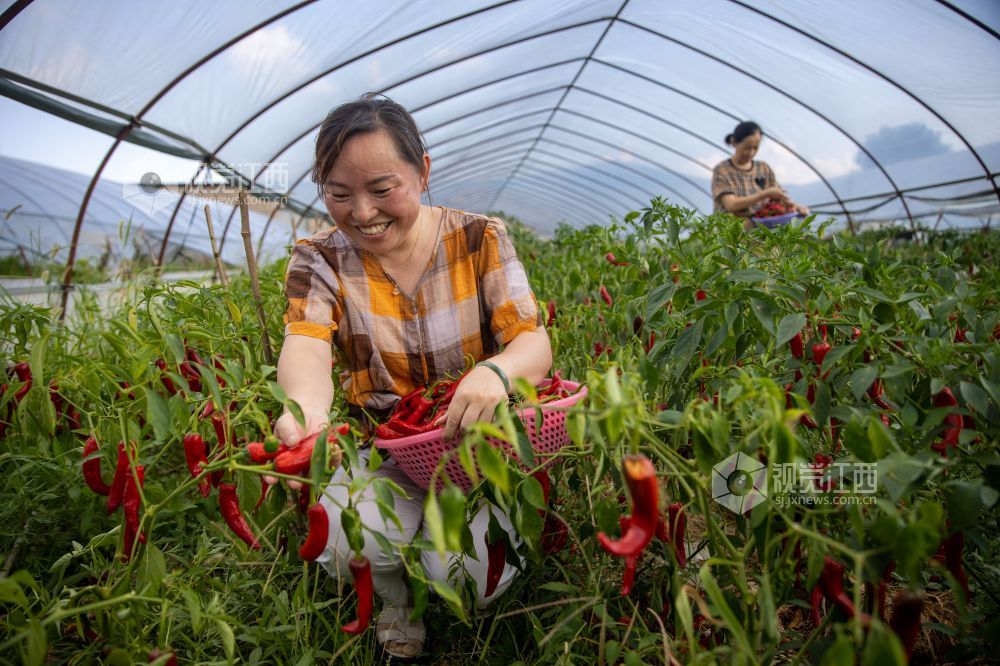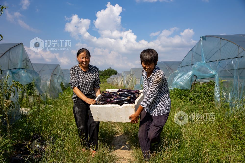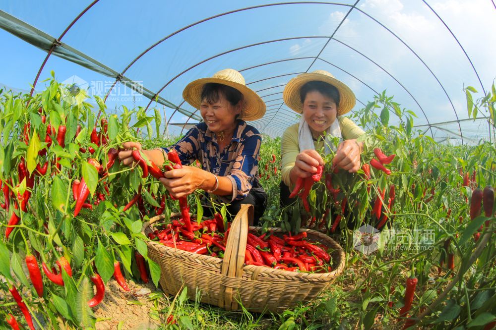 2021年7月23日,江西省瑞昌市横港镇,九江市辉祥有机果蔬专业合作社内一派繁忙,工人们正在采摘辣椒,茄子、南瓜等时令有机蔬菜,准备装车发运。