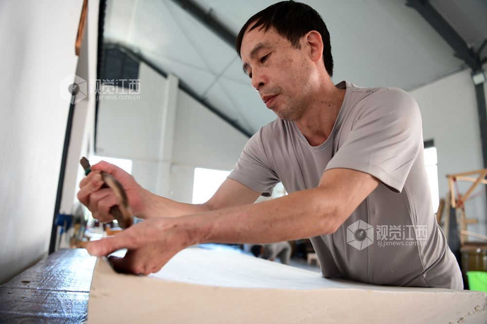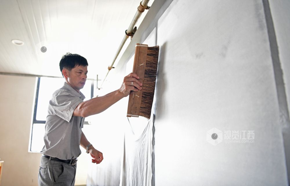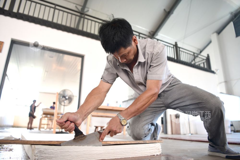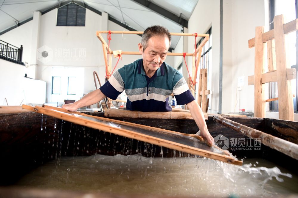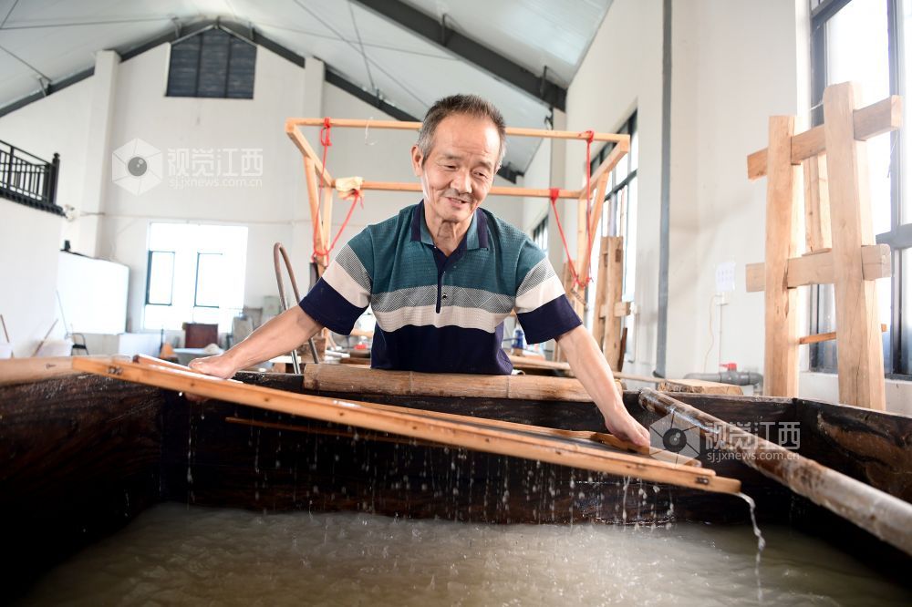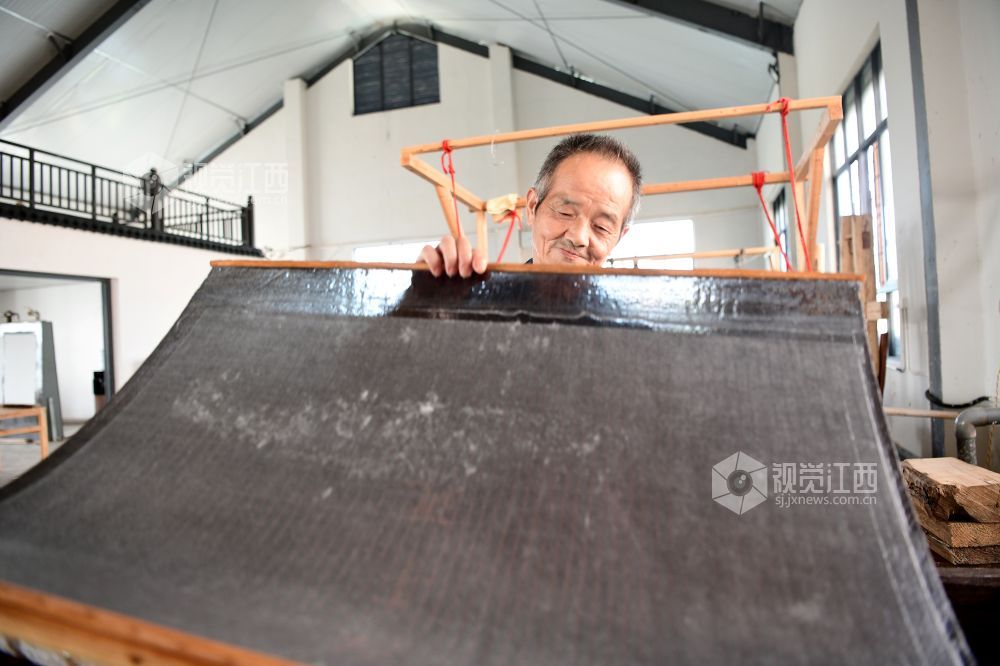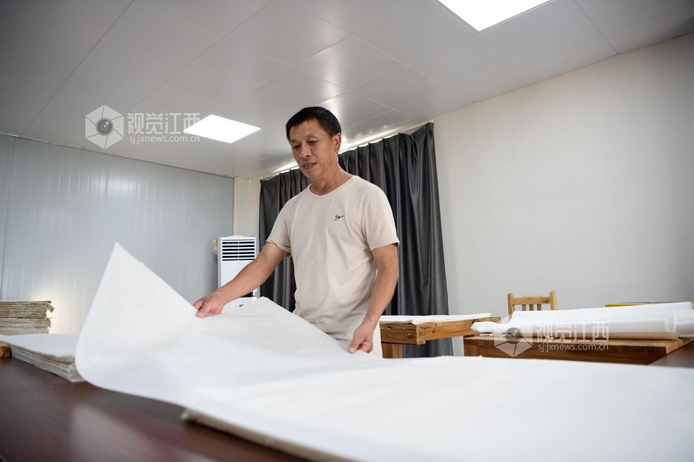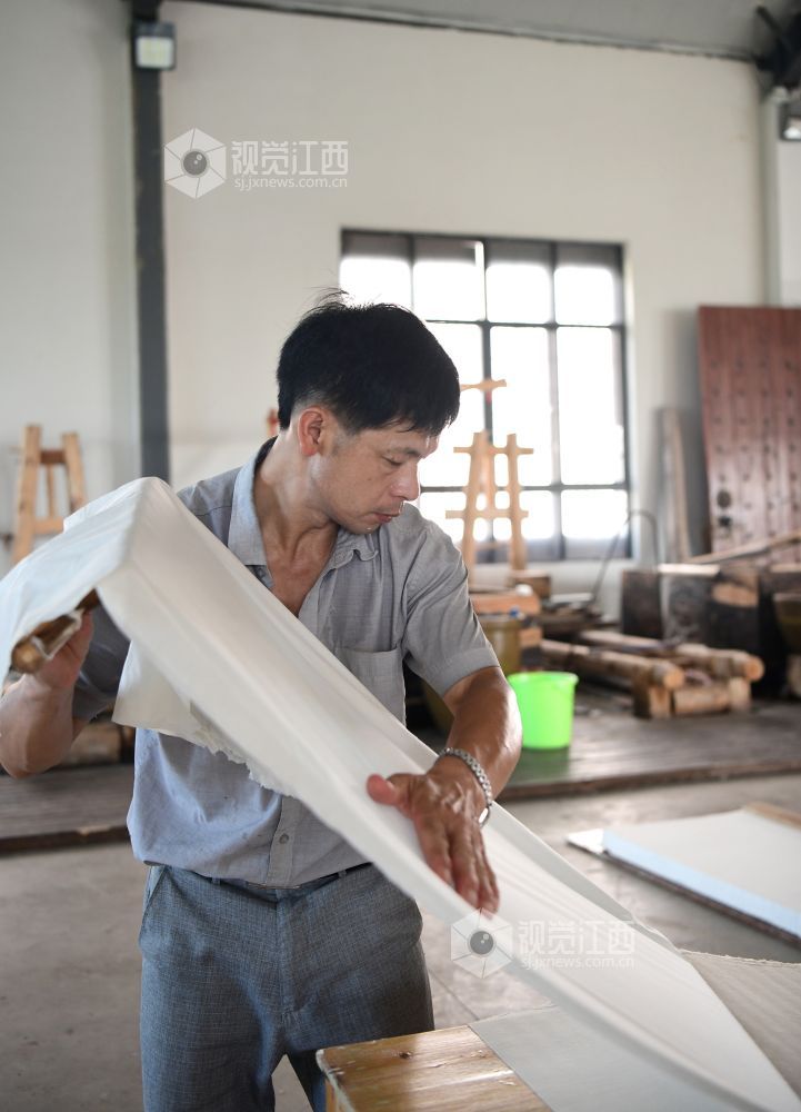 2021年8月2日,在江西省上饶市铅山县鹅湖镇万通连四纸文创车间,工人正在忙着制作连四纸。
