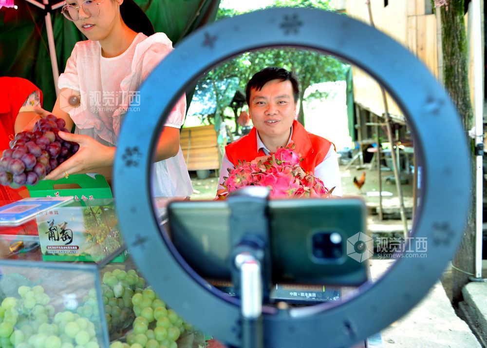 2021年7月30日,江西省上饶市德兴市泗洲镇党委书记冷辕正在该镇潭埠村,通过网络直播帮助当地果农叫卖火龙果。