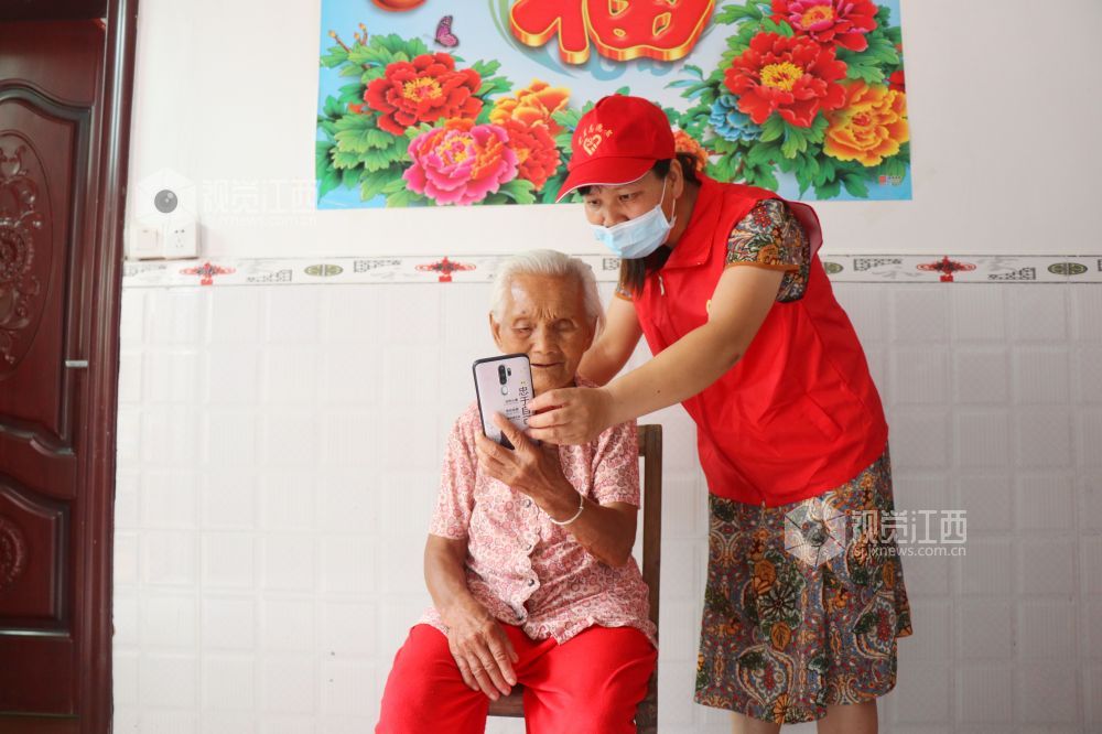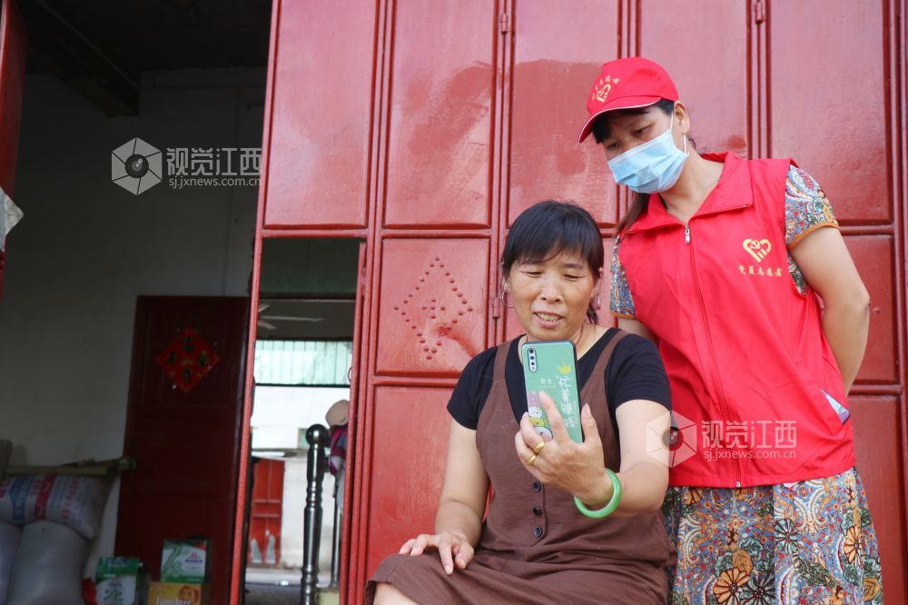 8月5日,江西省余干县康山垦殖场里溪村新时代文明实践站志愿者为留守儿童、留守老人与外出务工家人提供“亲情连线”服务。