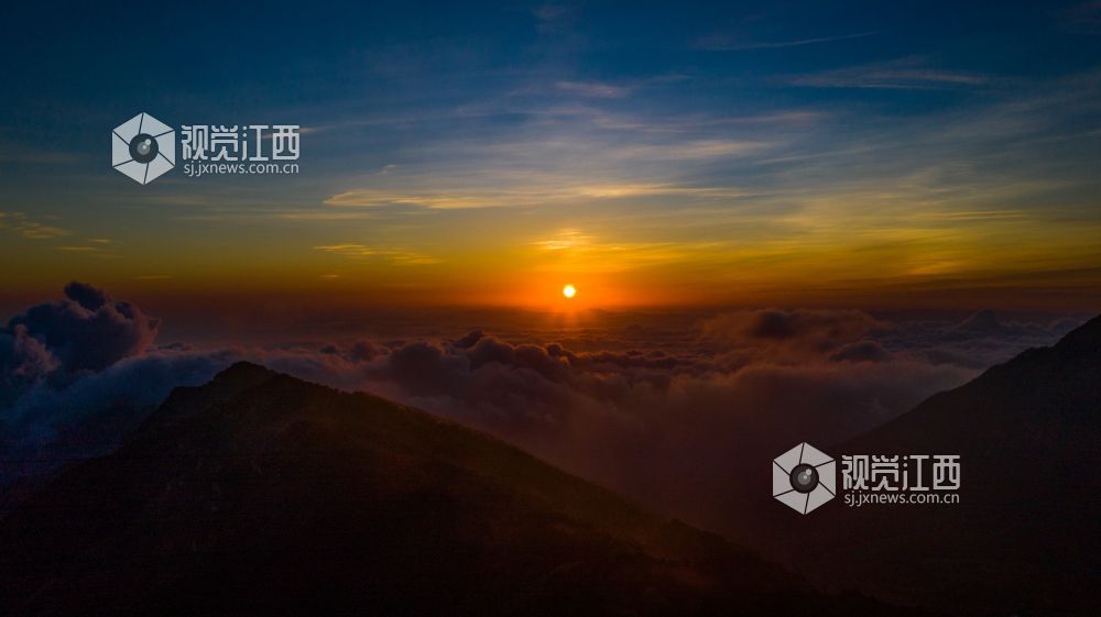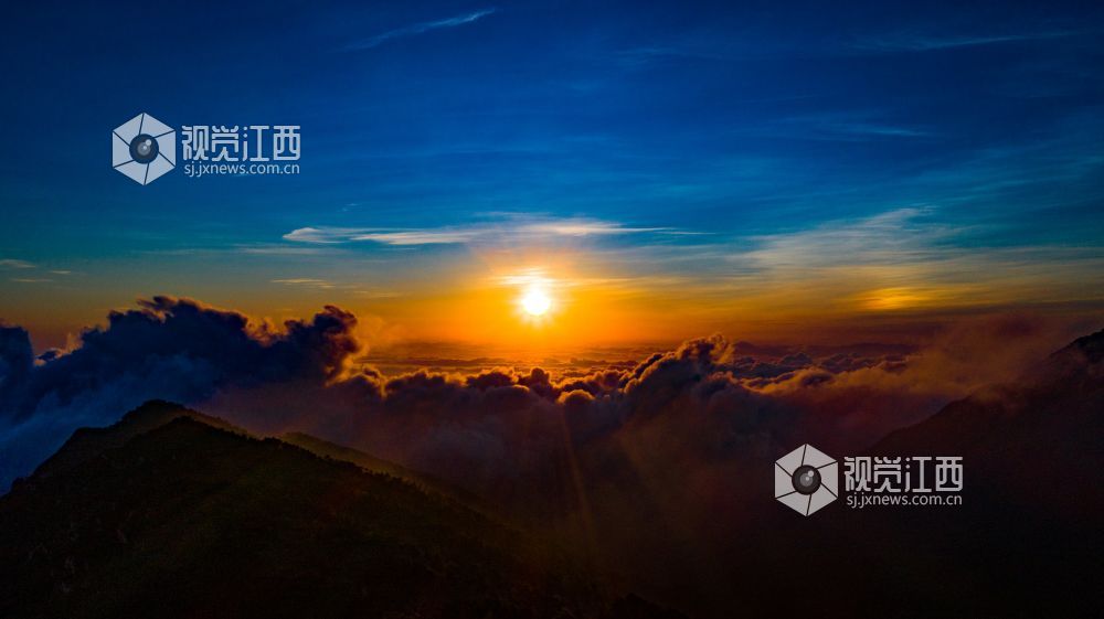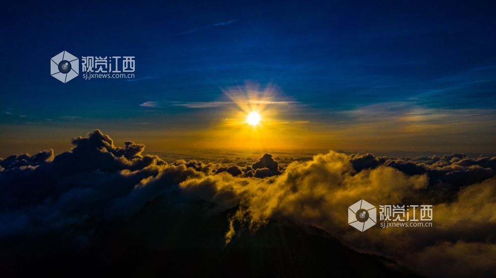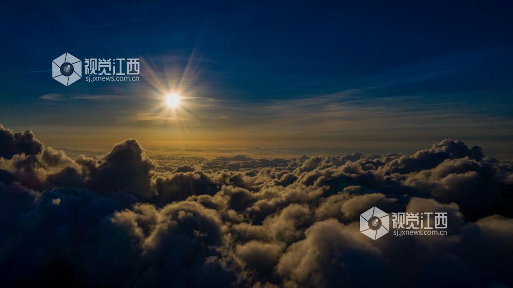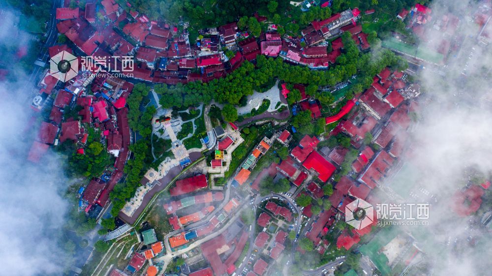 2021年8月6日晨,江西省九江市庐山风景区上空,云海在红日的照耀下如万马奔腾,云端下的景区宛如仙境,给度假的人们带来阵阵清凉。