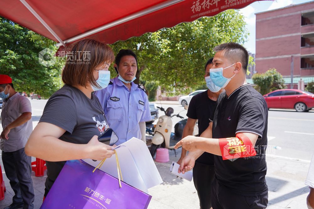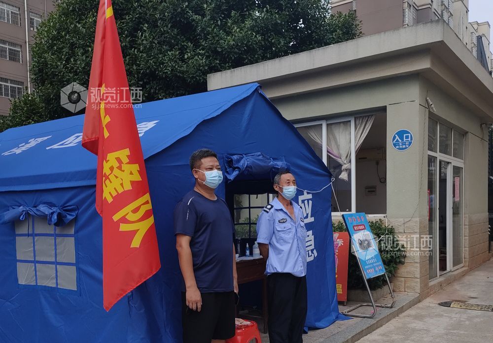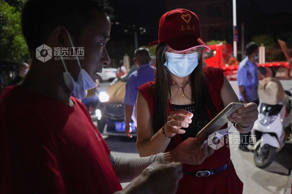 2021年8月7日,江西省金溪县文庄社区金碧华府小区疫情防控人员正在进行防控排查。据悉,当地充分发挥发挥各级党组织、临时党支部、网络化管理单位、群众团体、社会组织以及小区业委会和物业公司的作用,通过多管齐下形成合力,构建疫情防控严密防线。