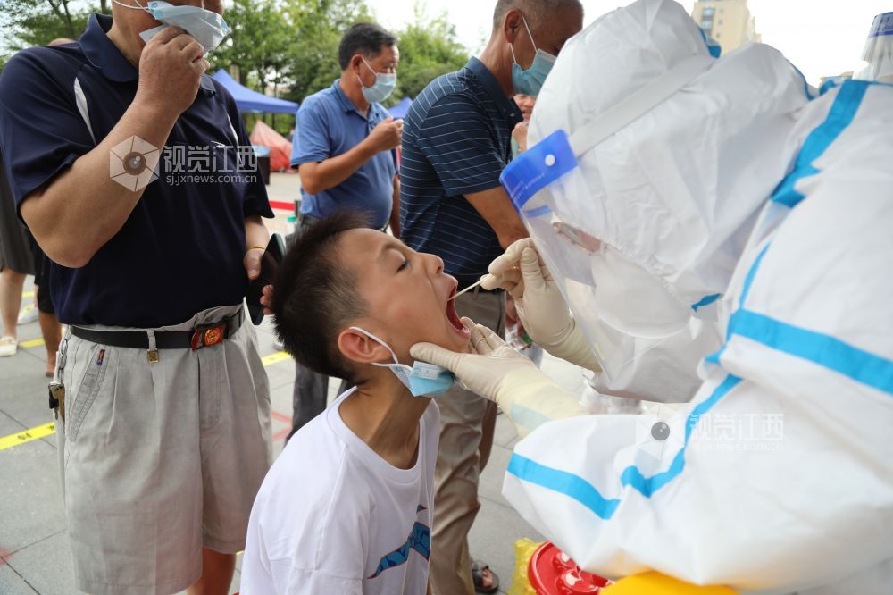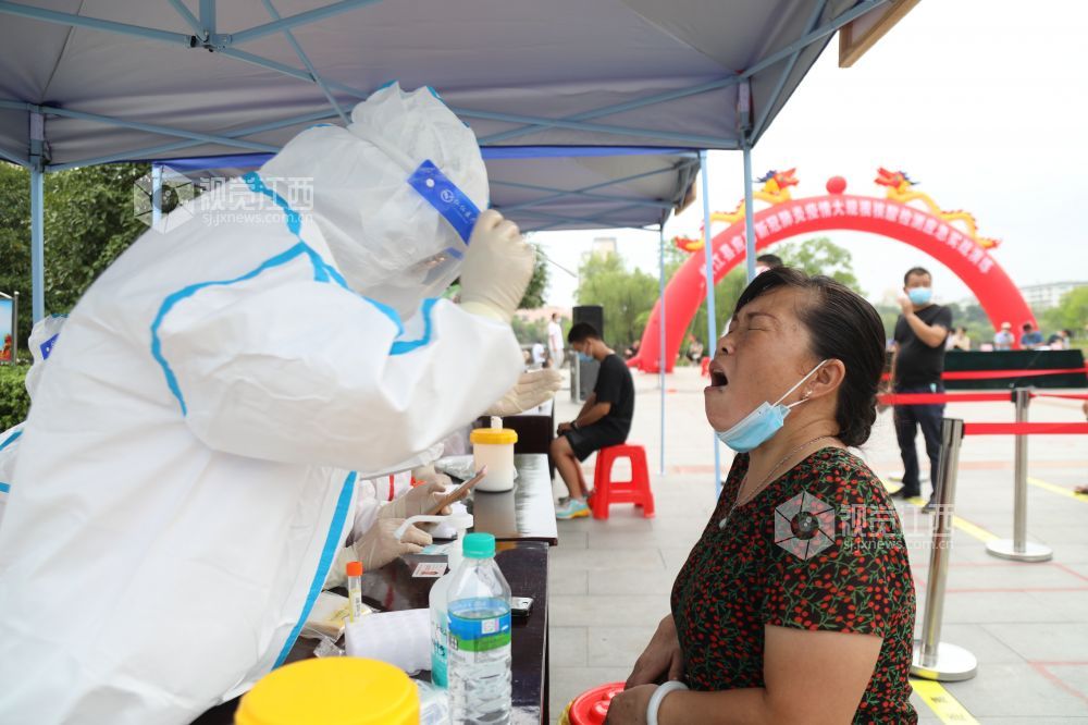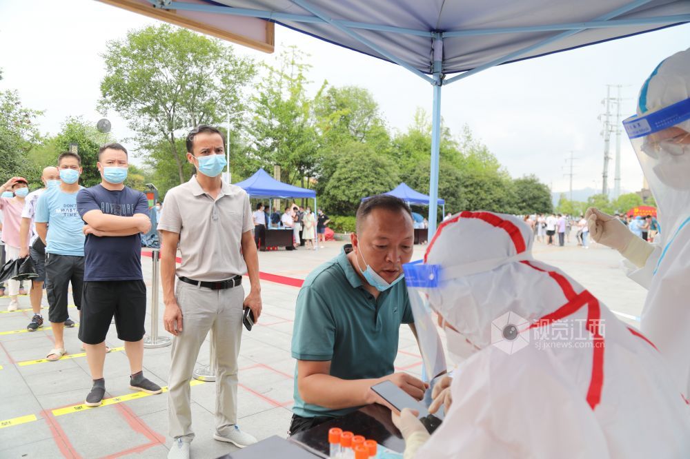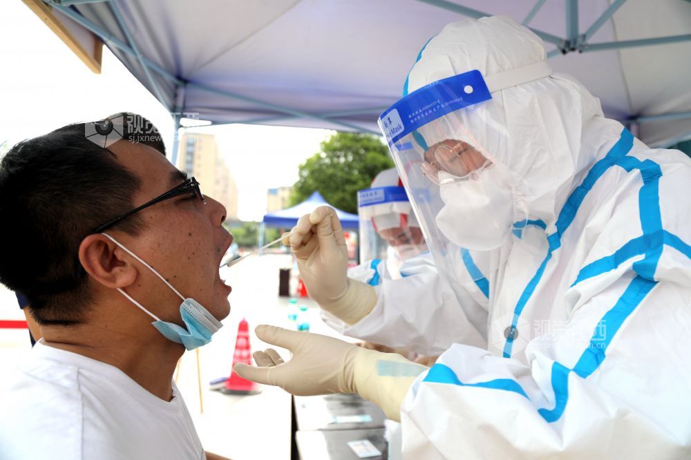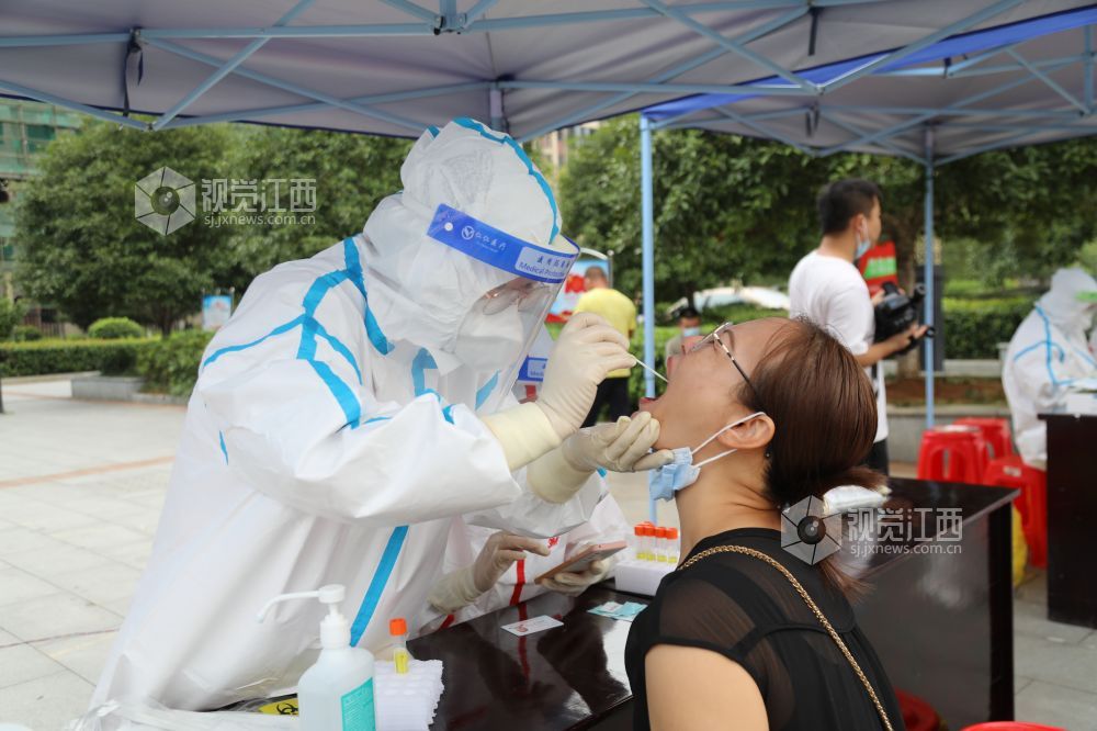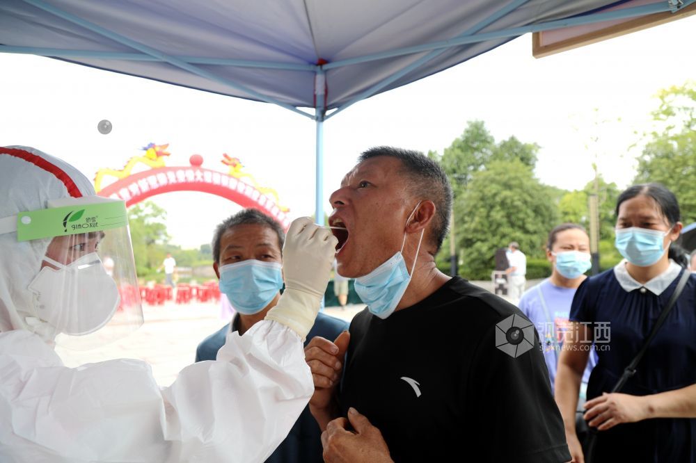 2021年8月19日,江西省峡江县组织开展核酸检测应急演练,医务人员正在核酸采样。