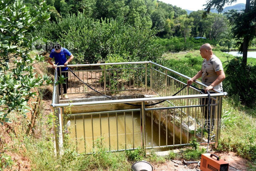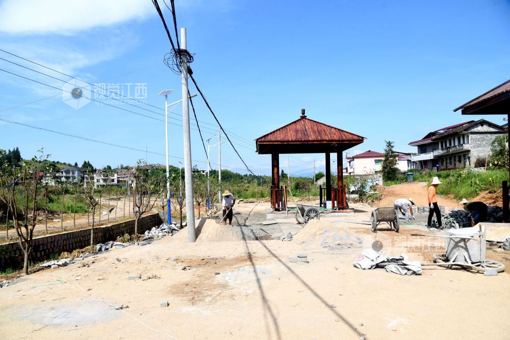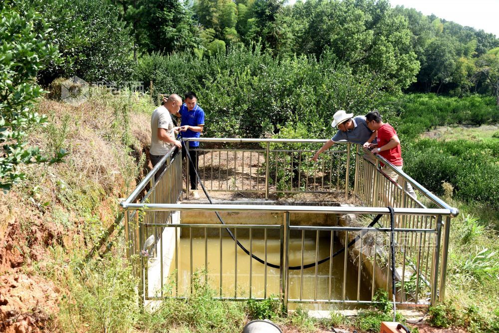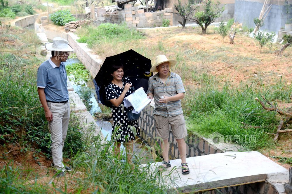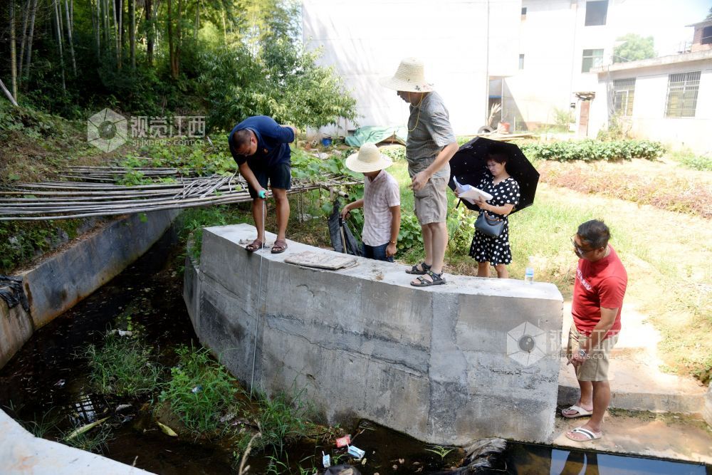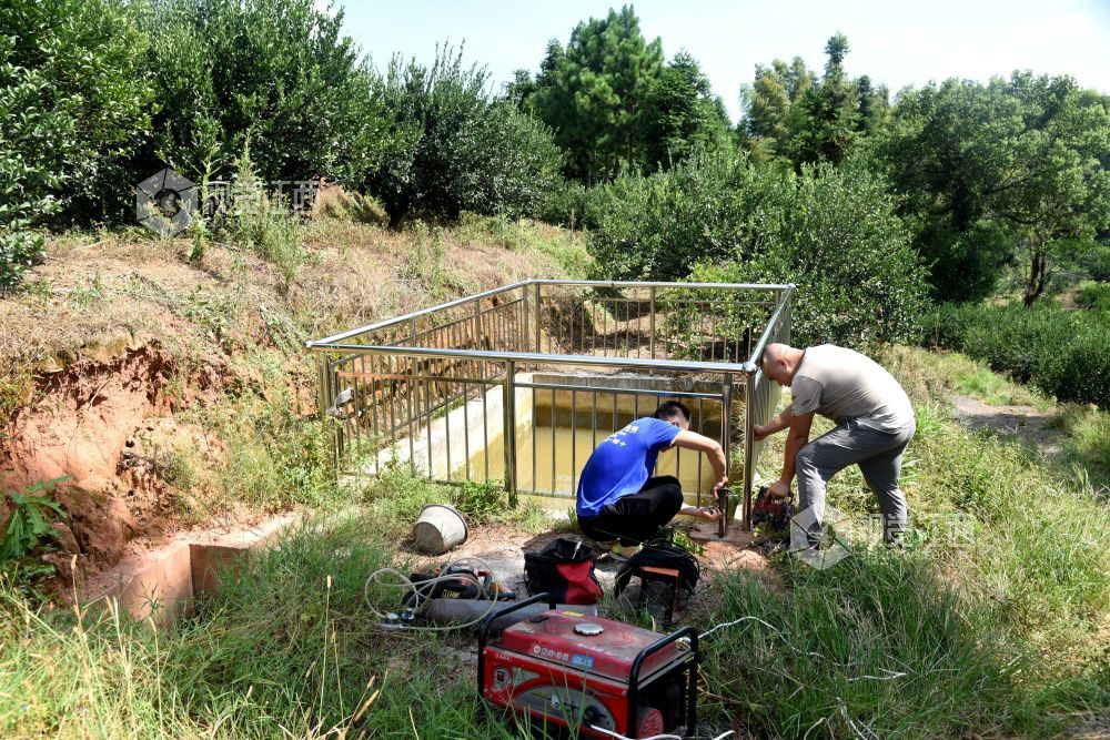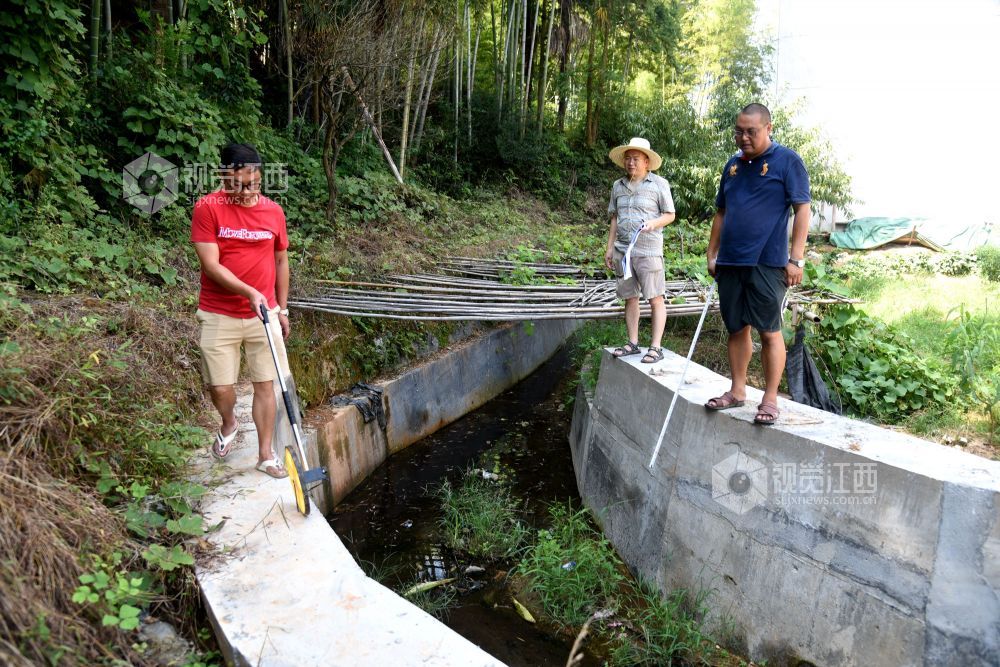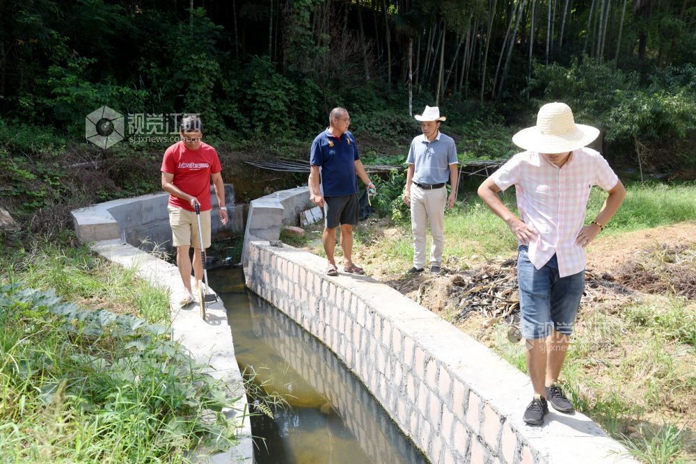 2021年8月26日,江西省抚州市南丰县国家水土保持重点项目曾家丰生态清洁小流域综合治理施工现场,工人们和技术人员在进行施工和验收。