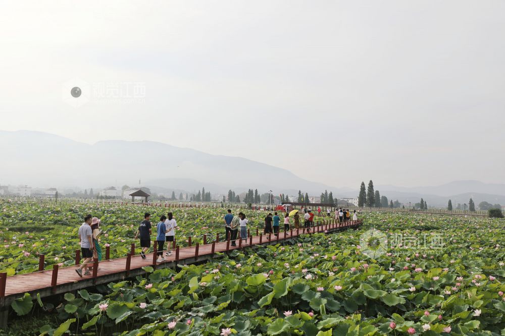 莲花村曾是个贫困村,全村1717人中建档立卡的贫困人口有316人。2012年,莲花县通过“公司+基地+农户”模式,引进10余家农业企业,在该村开发建设一个集科研、生产、加工、销售、旅游、文化展示、科普教育为一体的荷花博览园,荷花种植面积3000余亩,荷花品种300余个。2014年,该园成功申报为国家4A级景区。如今,莲花村有400多人从事与旅游相关产业,人均收入从2015年的4000多元提高到现在的18000多元,昔日贫困村走上致富路。该村也因此评为全国民主法治示范村、省级生态村、全省精品农村社区。
