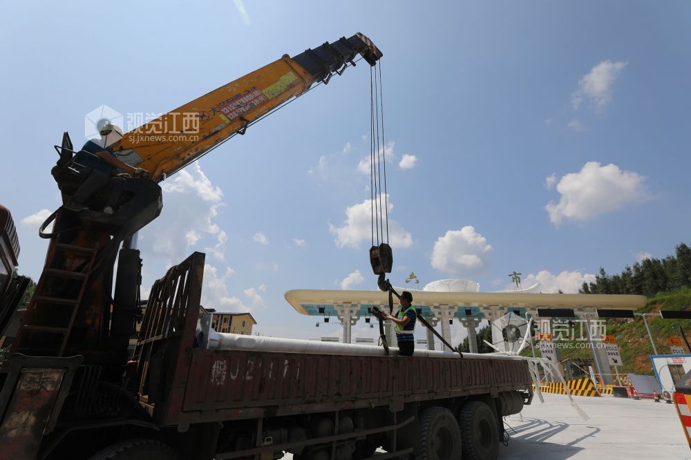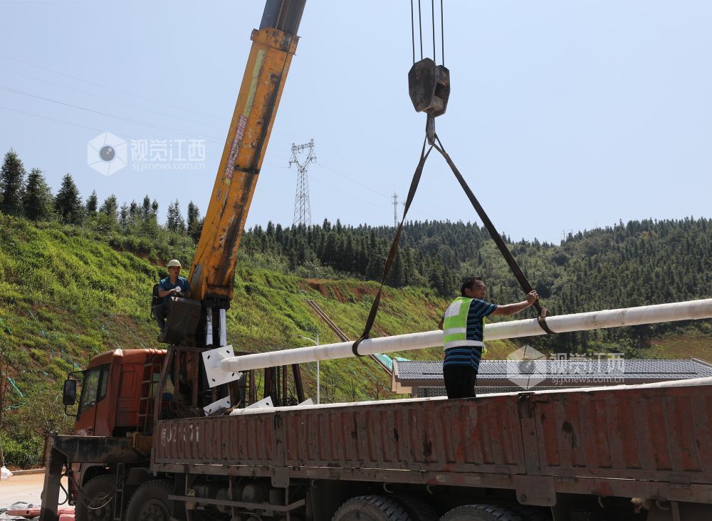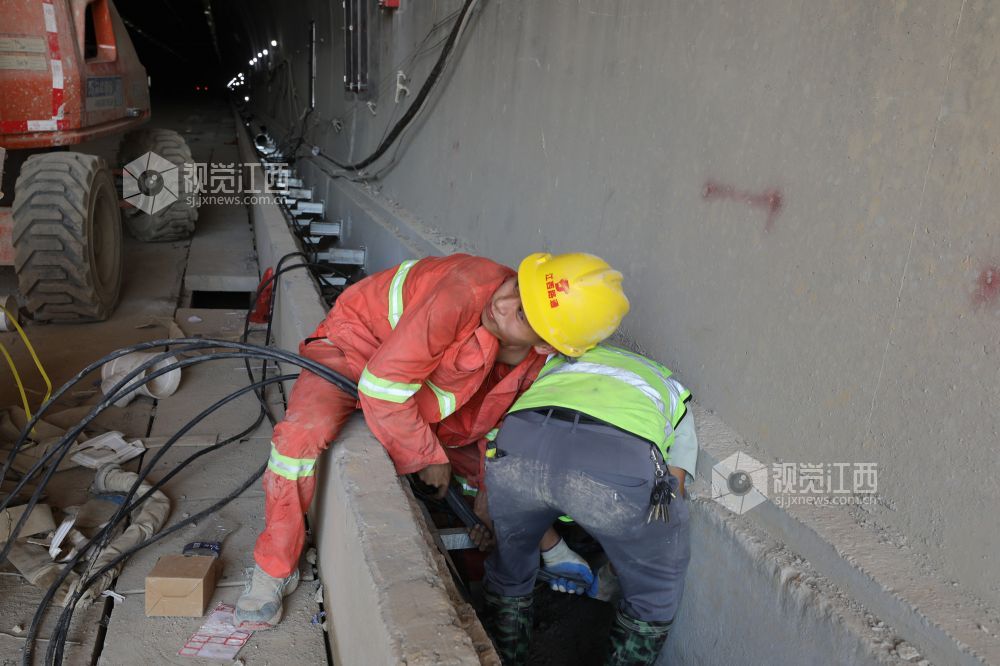 8月31日,萍莲高速莲花段工人正在加紧施工,为9月底通车做好最后的工作。目前萍莲高速整个主体工程已经完工,正在抓紧安装电力通讯设备。