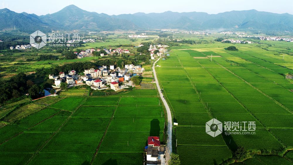 2021年9月8日,在江西省九江市湖口县武山镇武联村,将要成熟的水稻、平坦规整的农田、错落有致的民居、纵横交错的道路、层峦叠翠的群山构成美丽的秋日画卷。