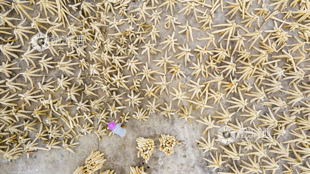 眼下,当地天气晴好,第三茬丝瓜络采摘在即,农户正加紧晾晒已丰收的丝瓜络。据悉,今年丝瓜络较往年产量攀高,市场行情一路走俏,亩产值达万元。