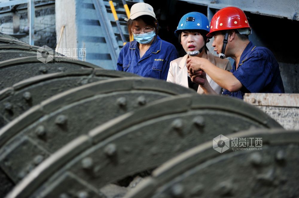 2021年9月11日,在江西省德兴市花桥镇党员干部正在该镇鱼塘村花桥金矿选矿车间了解其生产情况,并叮嘱员工一定要注意安全。