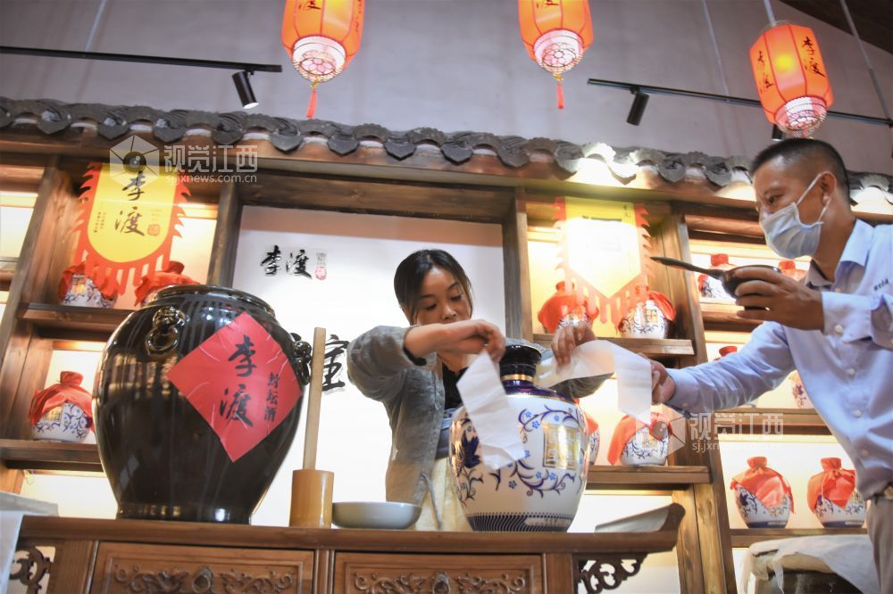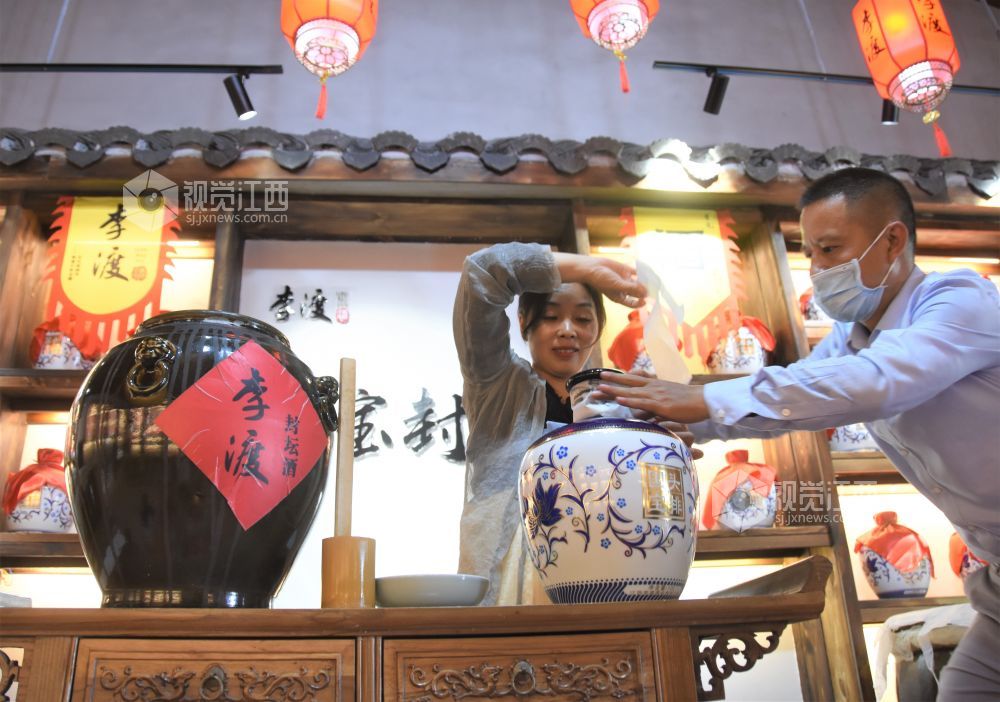 2021年9月14日,在江西省进贤县李渡镇2021年李渡酒厂第八届国宝封坛酒文化节上,来自鄱阳县的顾客早早赶到现场争先认购国宝封坛酒。他们说:“酒,寓意天长地久,年年富有,祈盼来年大丰收?!?/p>