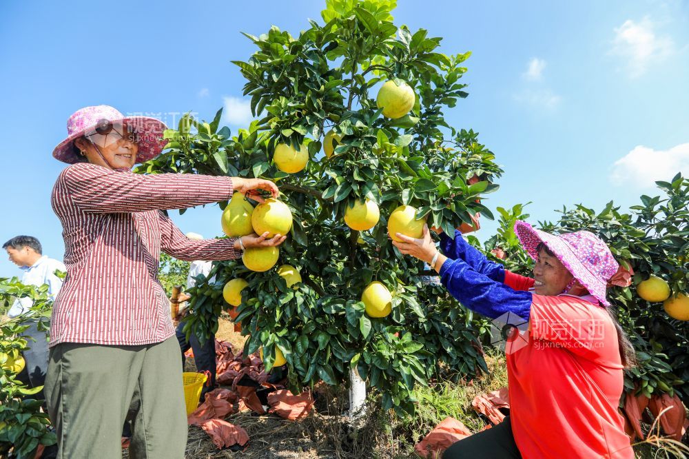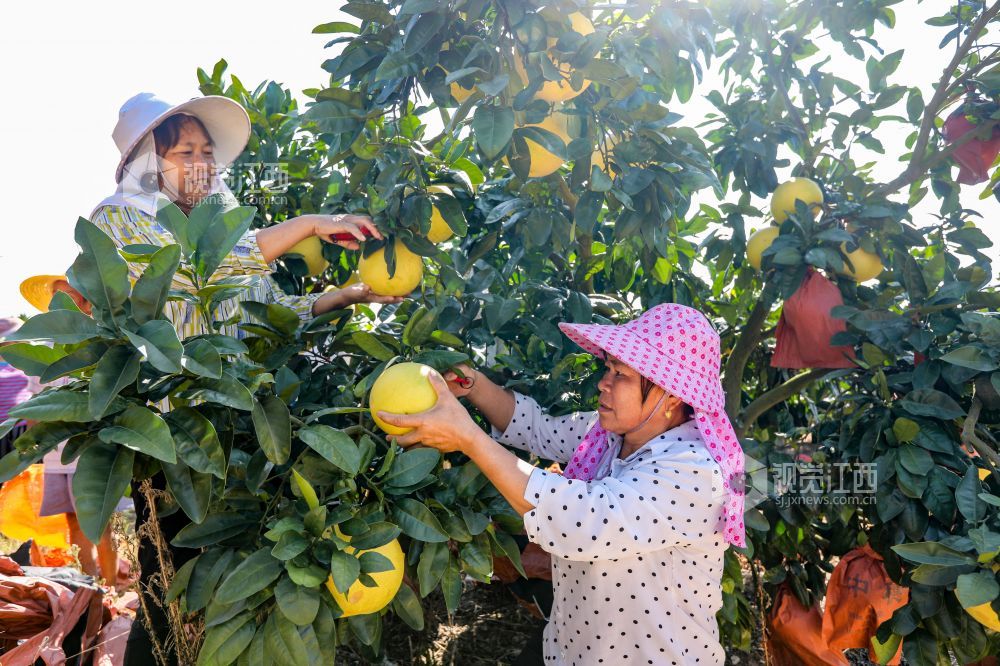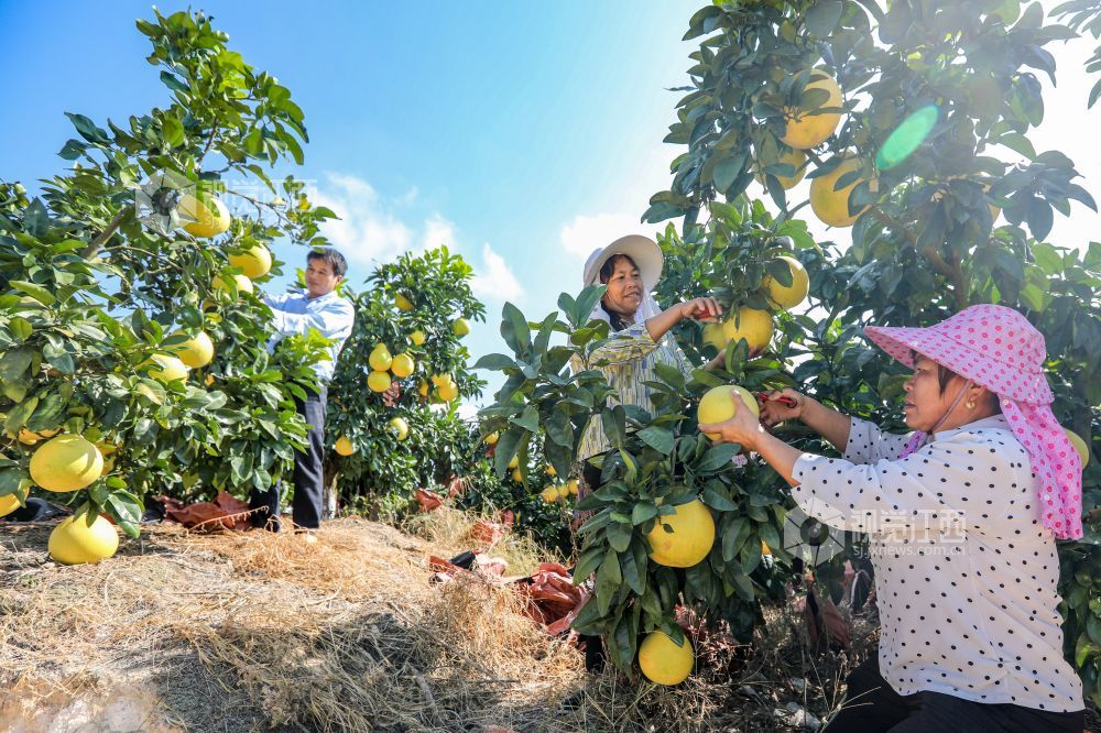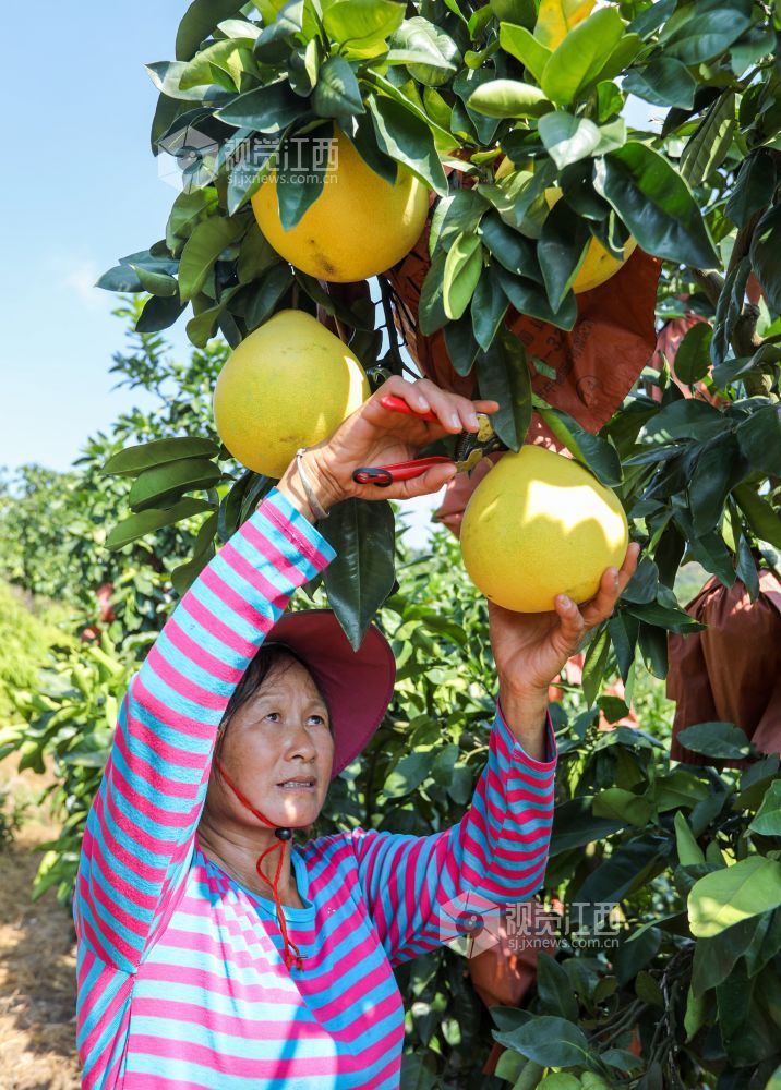 中秋将至,蜜柚丰收,果农们抢抓晴好天气采摘蜜柚供应市场。