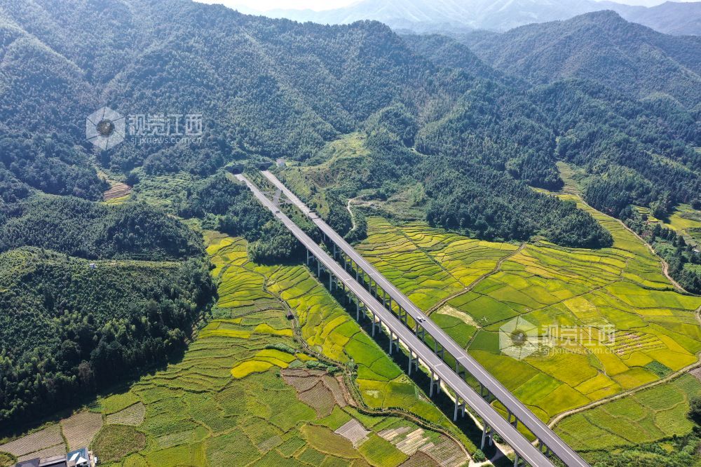 2021年9月17日,航拍江西省上饶市铅山县紫溪乡田园秋色。
