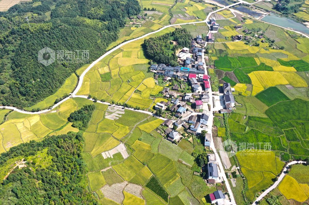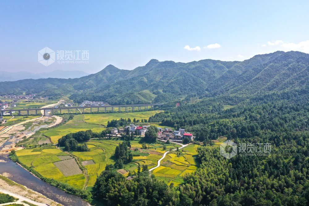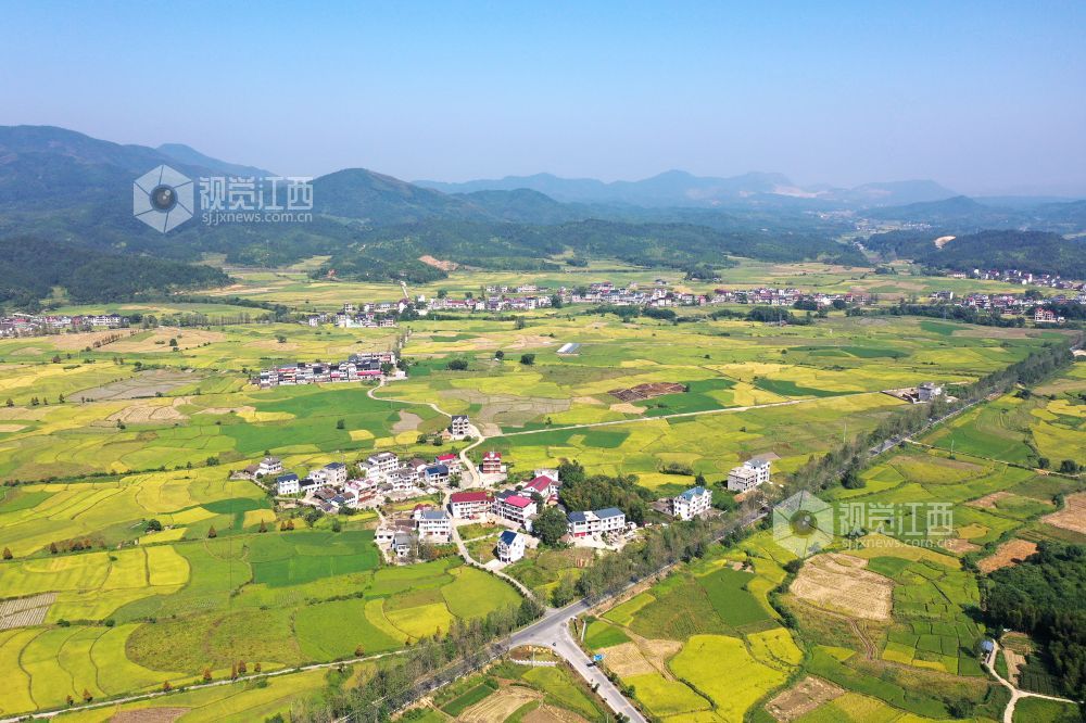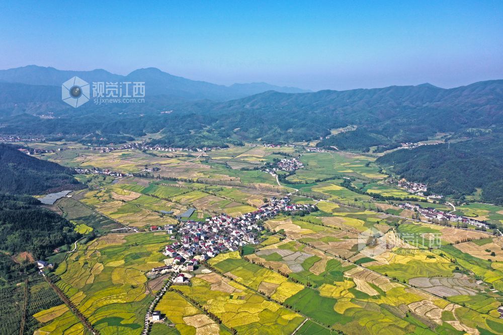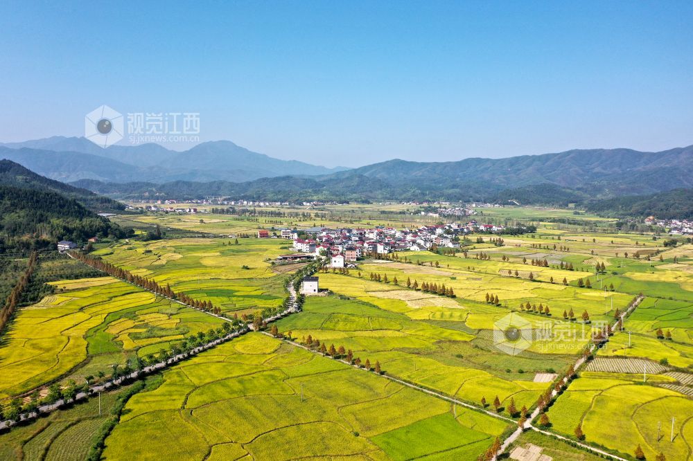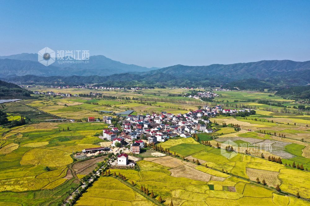 金秋时节,铅山水稻进入成熟期,一大片金黄色的稻谷在阳光的照射下显得格外漂亮,宛如打翻的“调色盘”,村庄与田园和谐共处,形成了一道靓丽的秋日风景。