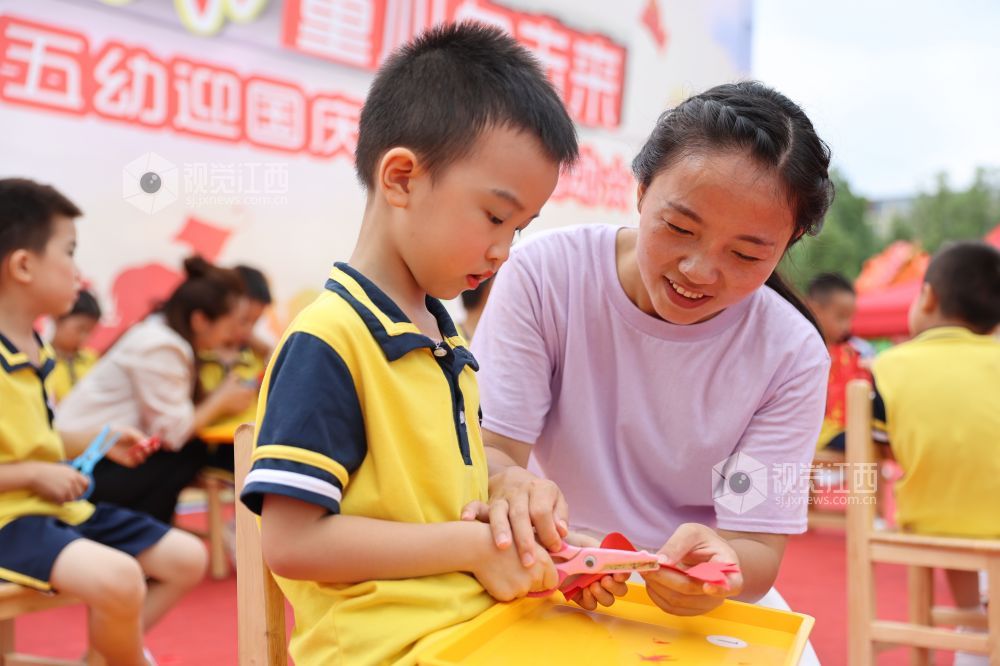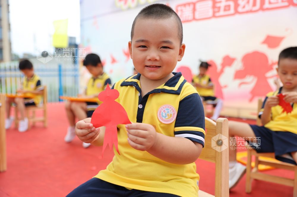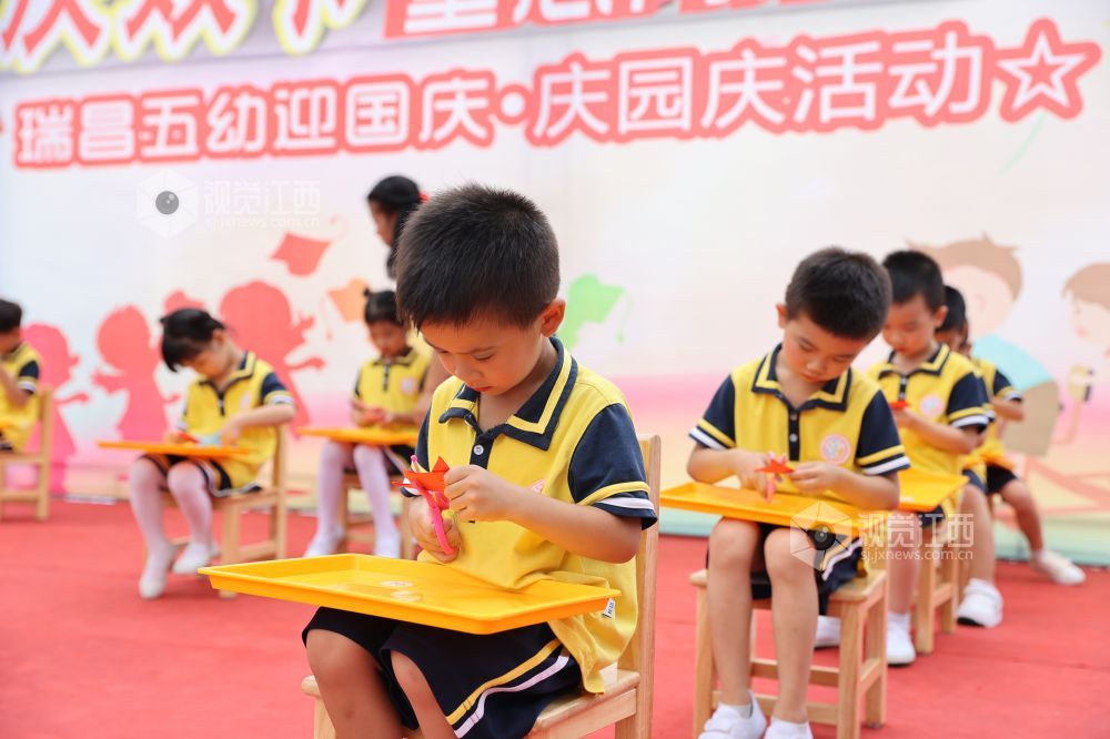 当日,瑞昌市第五幼儿园开展“童心向未来迎国庆”活动,小朋友们在非遗传承老师指导下,通过在舞台上表演剪纸节目,表达对祖国的热爱和祝福之情,喜迎中华人民共和国成立72周年。