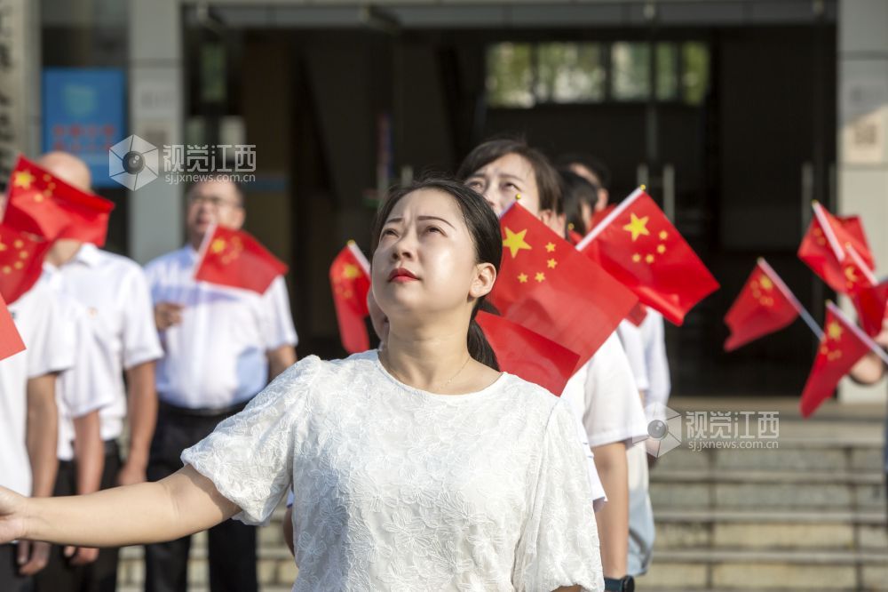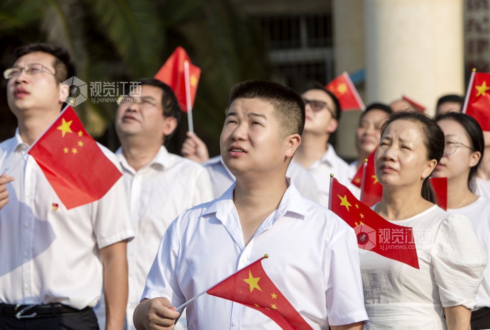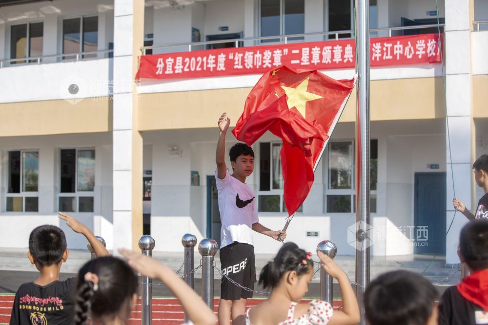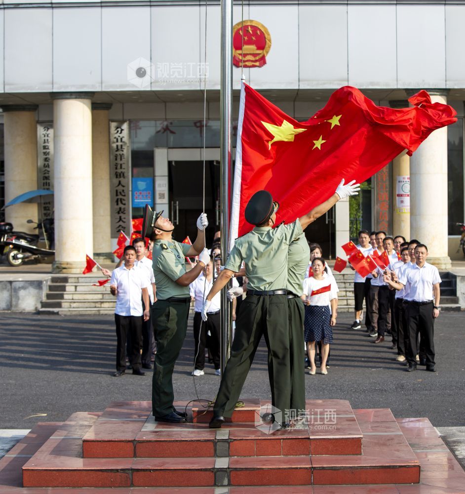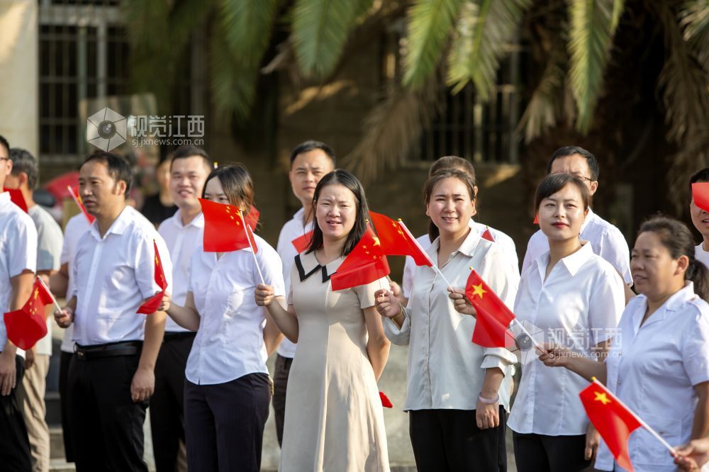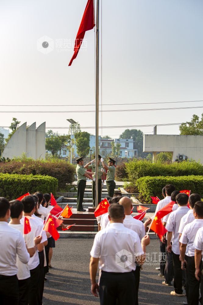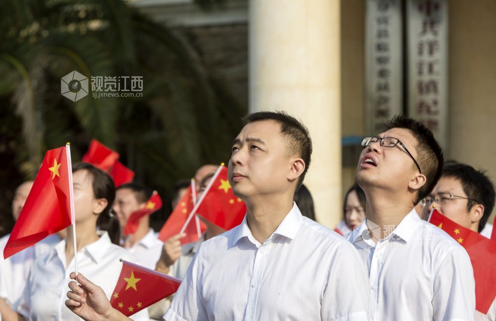 为庆祝中华人民共和国成立72周年,进一步增强爱国主义教育,激发全镇干部的爱国主义精神。2021年9月30日上午,江西省新余市分宜县洋江镇政府干部和洋江中心学校师生分别举行了升旗仪式和唱国歌的形式的迎国庆活动。上午8时,升旗仪式开始,国旗手在庄严雄壮的《义勇军进行曲》中挥臂扬旗,鲜艳的五星红旗冉冉升起,全镇干部群众面向国旗肃立,深情高唱国歌,祝愿伟大祖国繁荣昌盛。