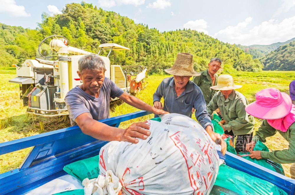 金秋时节,江西省永新县曲白乡浆坑村300多亩有机水稻陆续成熟,进入收割期。10月2日,当地农民利用晴好天气抢收有机稻,确保颗粒归仓。近年来,永新县充分利用当地良好的生态环境,积极引导山区农民发展有机水稻种植,确保农民增产增收,拓宽致富路。