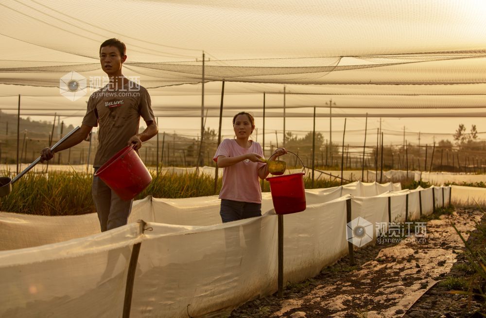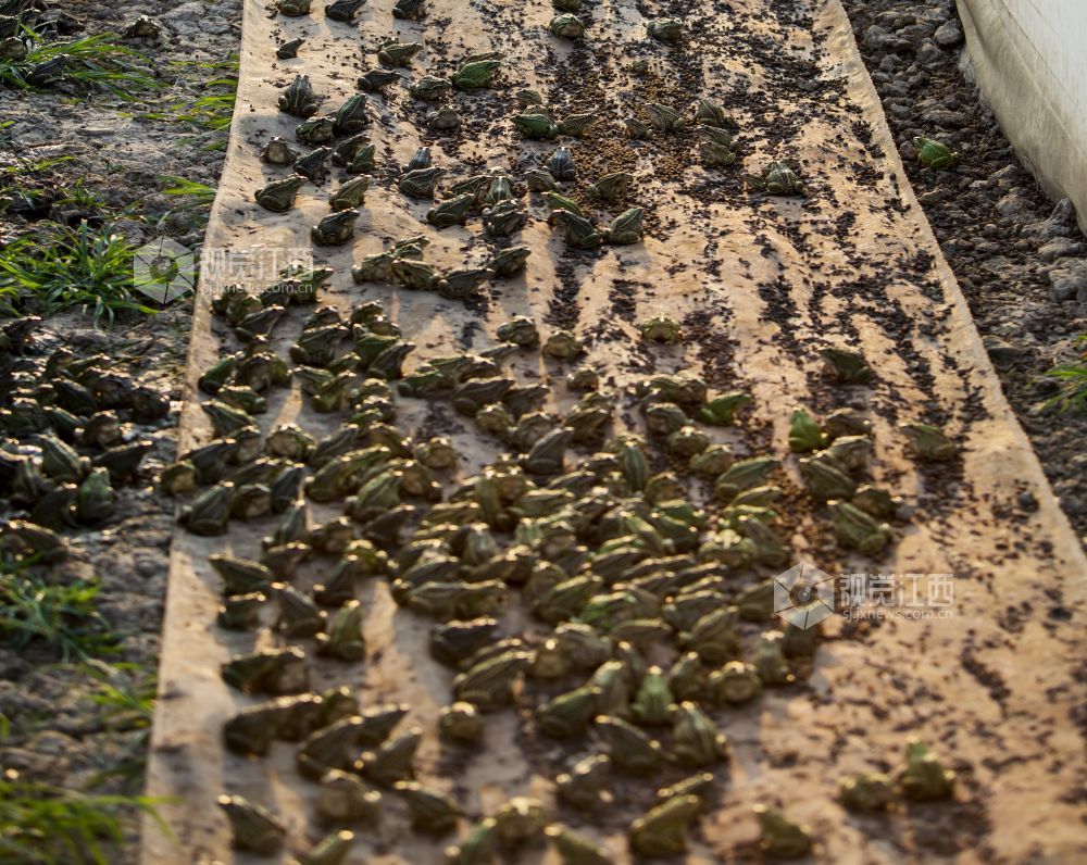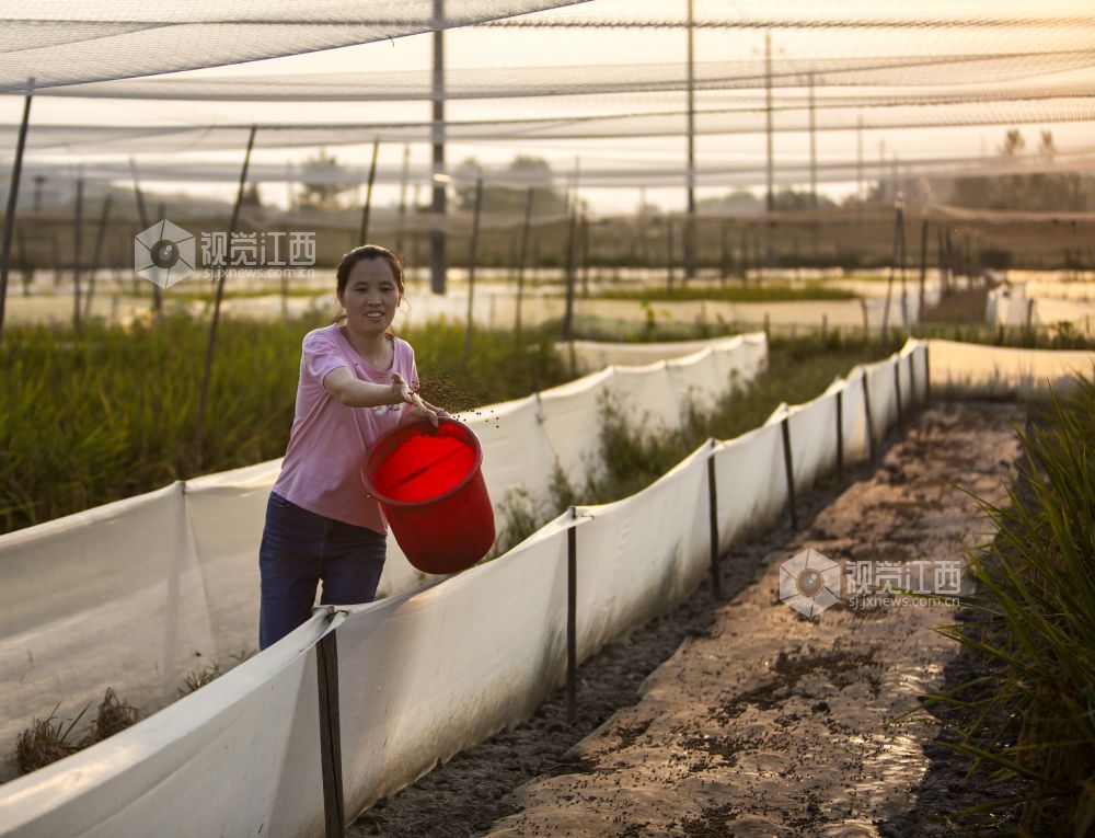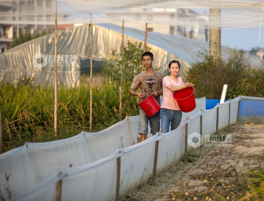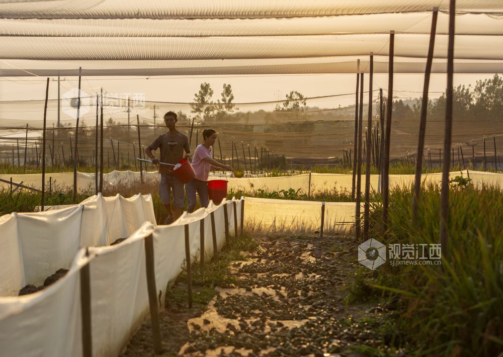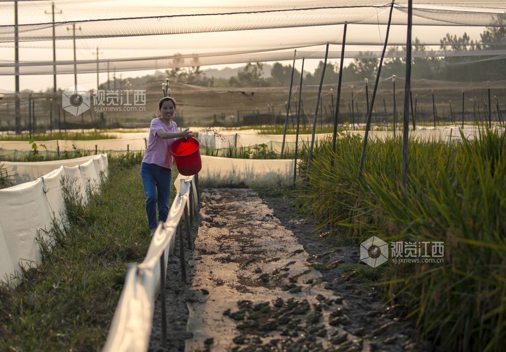 眼下,水稻还未收割,该村惠群种养合作社养殖基地40余亩稻田里养殖的青蛙开始出售。