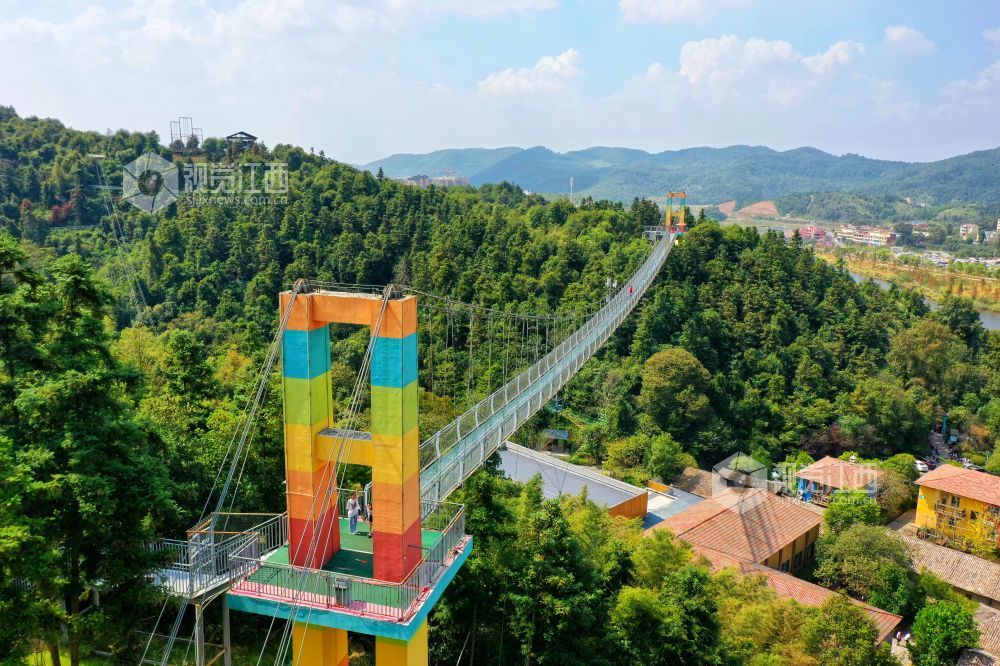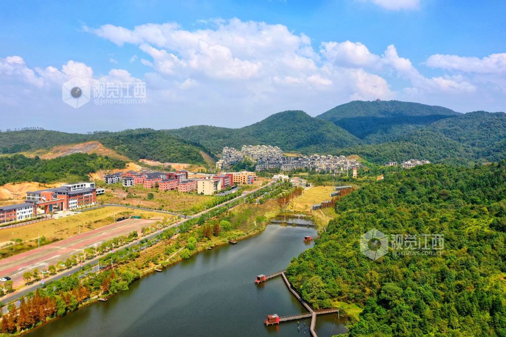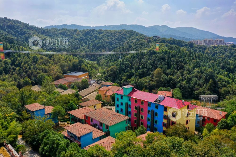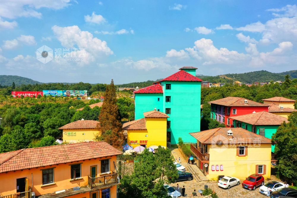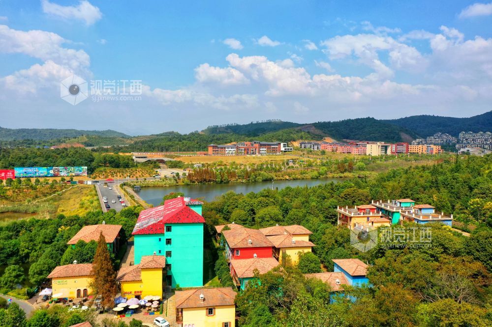 2021年10月6日,无人机航拍江西省新余市彩色村,色彩斑斓,空气清新,阳光明媚,国庆期间热闹非凡,吸引了无数游客前来游玩。