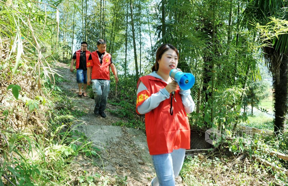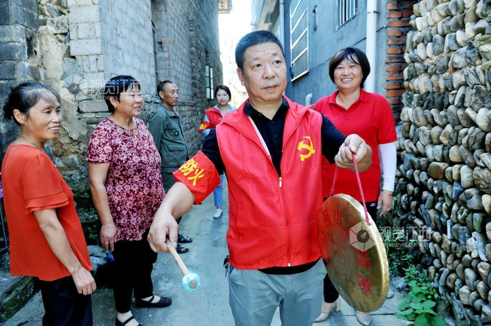 2021年10月5日,江西省德兴市龙头山乡暖水村党员干部敲着铜锣走村串户,告诫村民“天干物燥,小心火烛”。