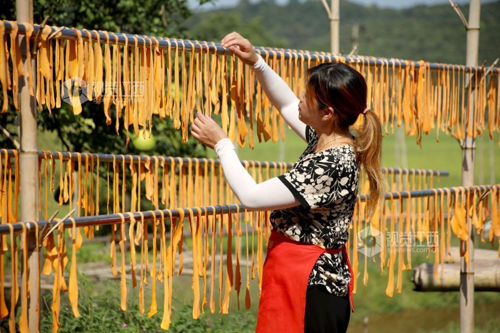 江西省德兴市张村乡南岸村历来有手工制作南瓜条,茄子干等土特产的传统,每年的7月至11月各家开始制作晾晒。