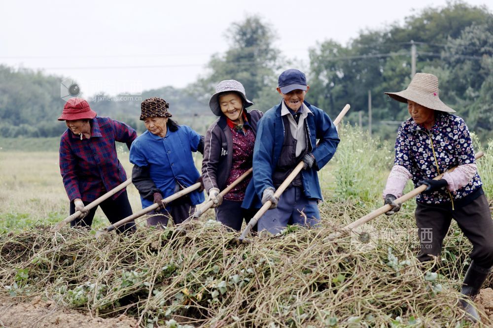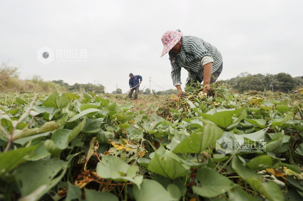 2021年10月11日,村民在江西省九江市湖口县舜德乡灰山村红薯基地开挖红薯、捡拾红薯、装运红薯,一派繁忙的秋收场景。
