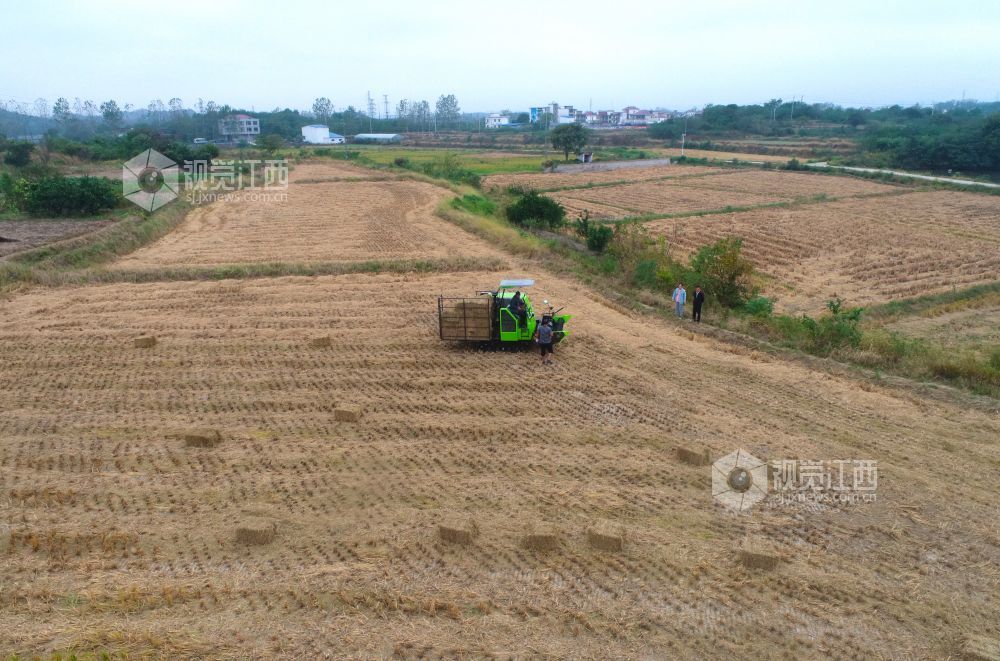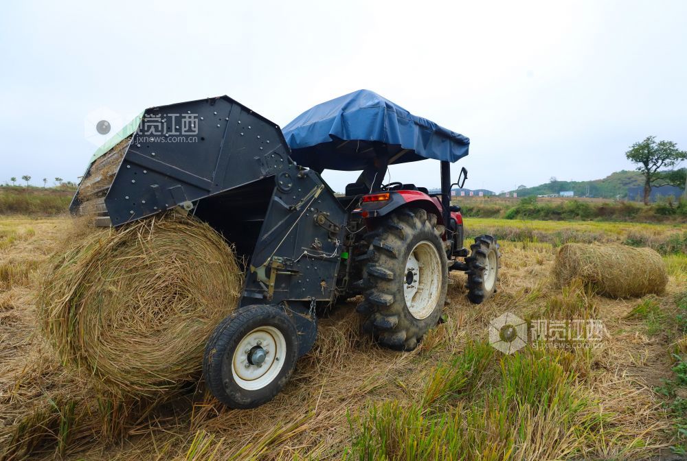 10月14日,江西省湖口县均桥镇种粮大户蔡初成在抢抓时间将稻草打捆。