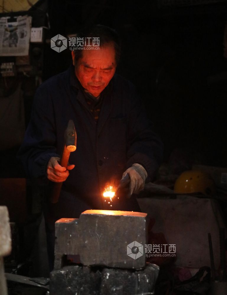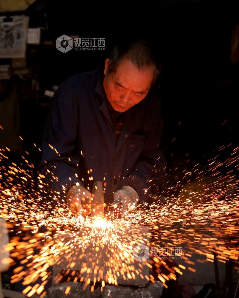 10月16日,行走在江西南昌老街羊子巷,听到“叮当叮当”有节奏的锤打声,这是铁匠手艺人魏桂生正在工作室的铁砧前忙碌着。