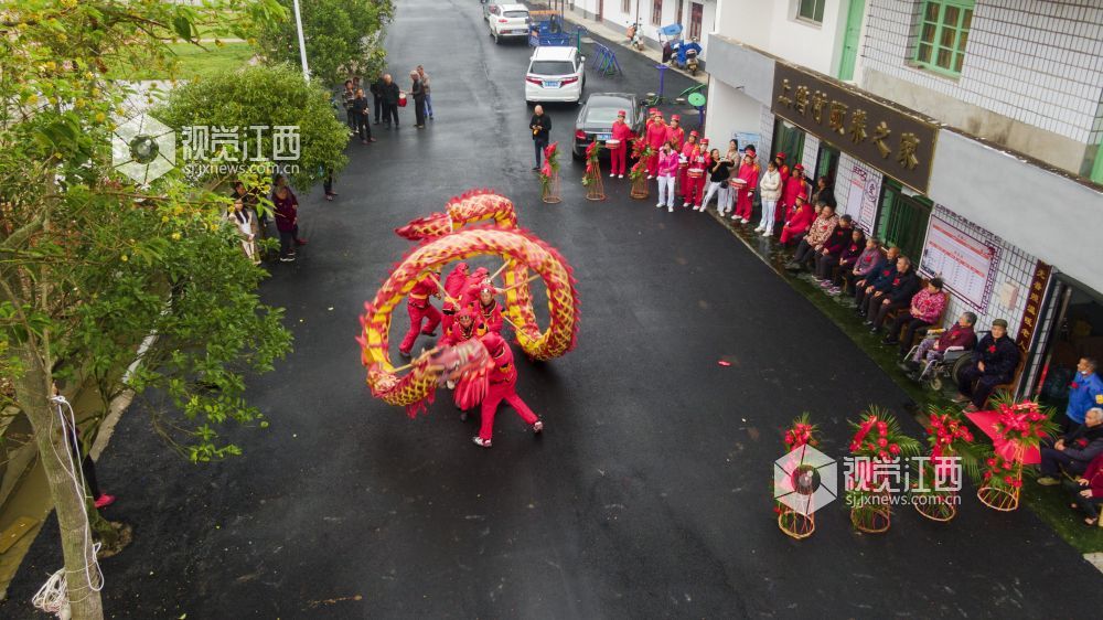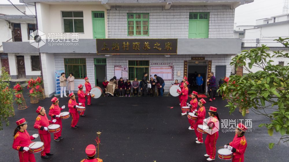 10月19日上午,在江西省新余市仙女湖区观巢镇洋潭村委上垱村,天下着濛濛细雨,气温也骤然下降,可在上垱村颐养之家里却暖意融融,老人们个个兴高采烈,因为他们今天搬进新家了,村里的舞龙队、腰鼓队、健身队都来给老人们搬进新装修的颐养之家表演庆贺。