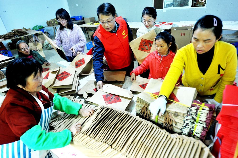 据了解,吴丹、许乐琴、张华丰都是2020年江西省鹰潭市余江区黄庄乡实施大学生回村工程中,按照“区聘、乡管、村用”模式招聘的“90”后优秀大学毕业生。今年初,为了带动村民致富,在乡党政的支持下,3名来自不同行政村的大学生村官联合创办了来料加工生产车间,专门加工服装、饰品、包装袋等各类产品,其中仅服装、饰品等针织品月出口量多达近万件,从而带动当地多个村里的村民家门口就业致富,助力乡村振兴。