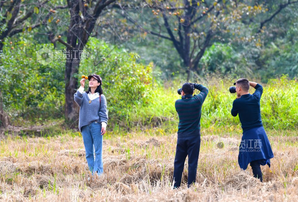 深秋时节,铅山县新滩乡后畈村一颗颗丰厚圆硕红润的柿子挂满树梢,仿佛一个个小灯笼美不胜收,丰收喜悦的景象和红柿子吸引众多市民和游客前来打卡拍照。