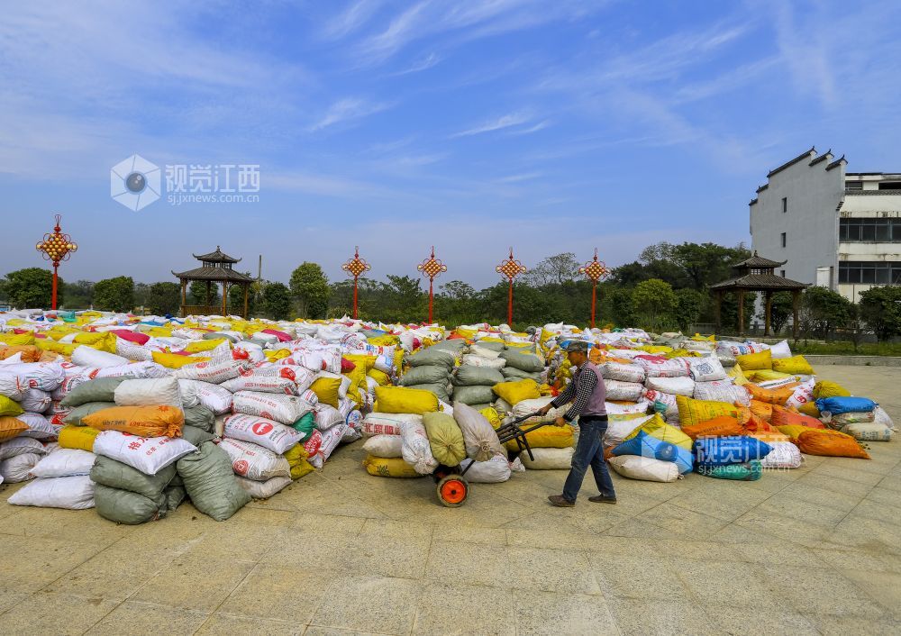 2021年10月26日,江西省九江市湖口县舜德乡万余亩油茶喜获丰收,农户正在销售采摘的鲜果。