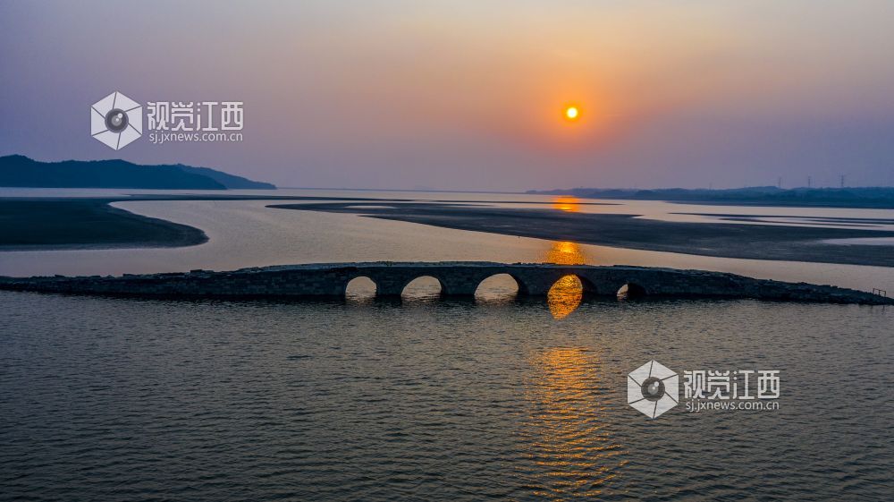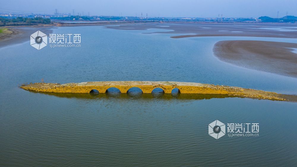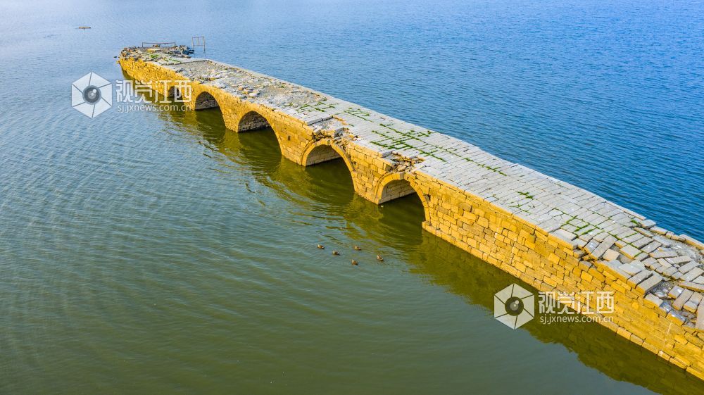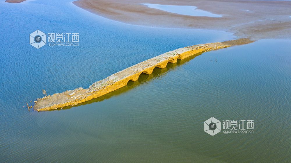 这座桥建于明代,丰水期隐于湖水,枯水期才会露出,是曾经人们往来的交通要道,如今成为人们旅游的“网红”打卡地。