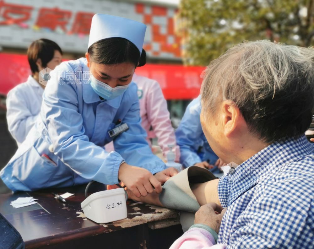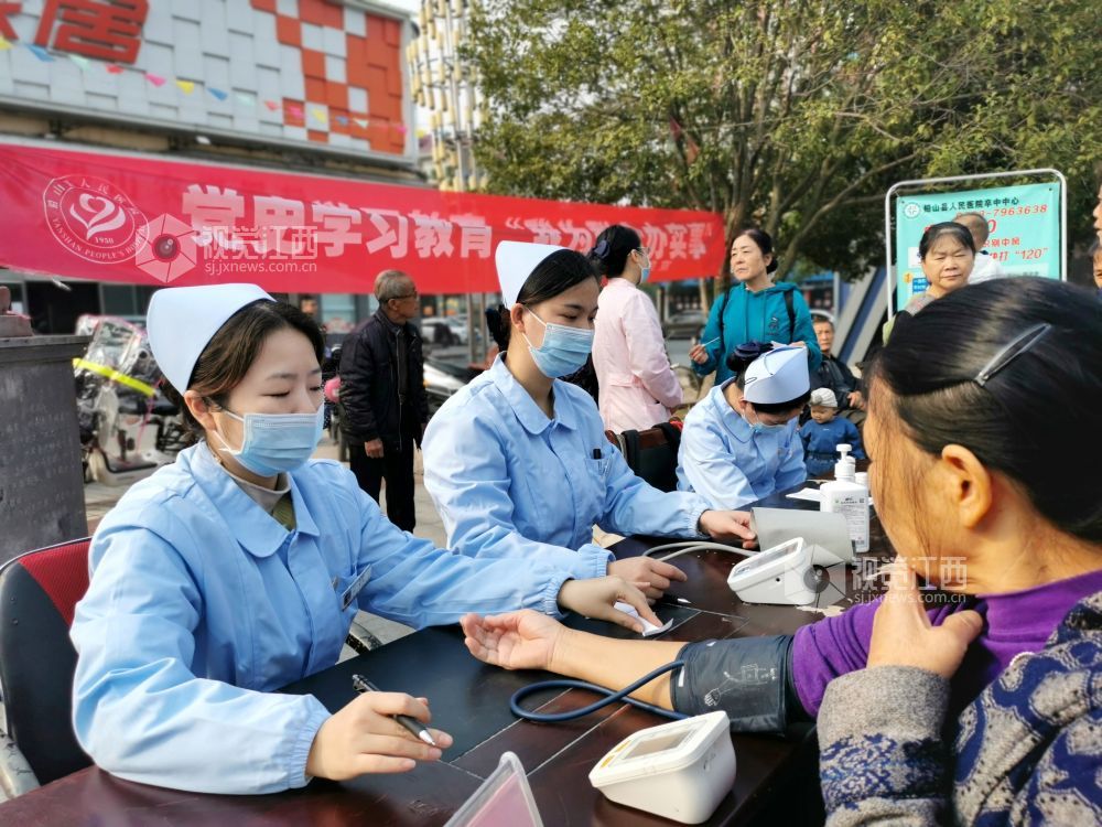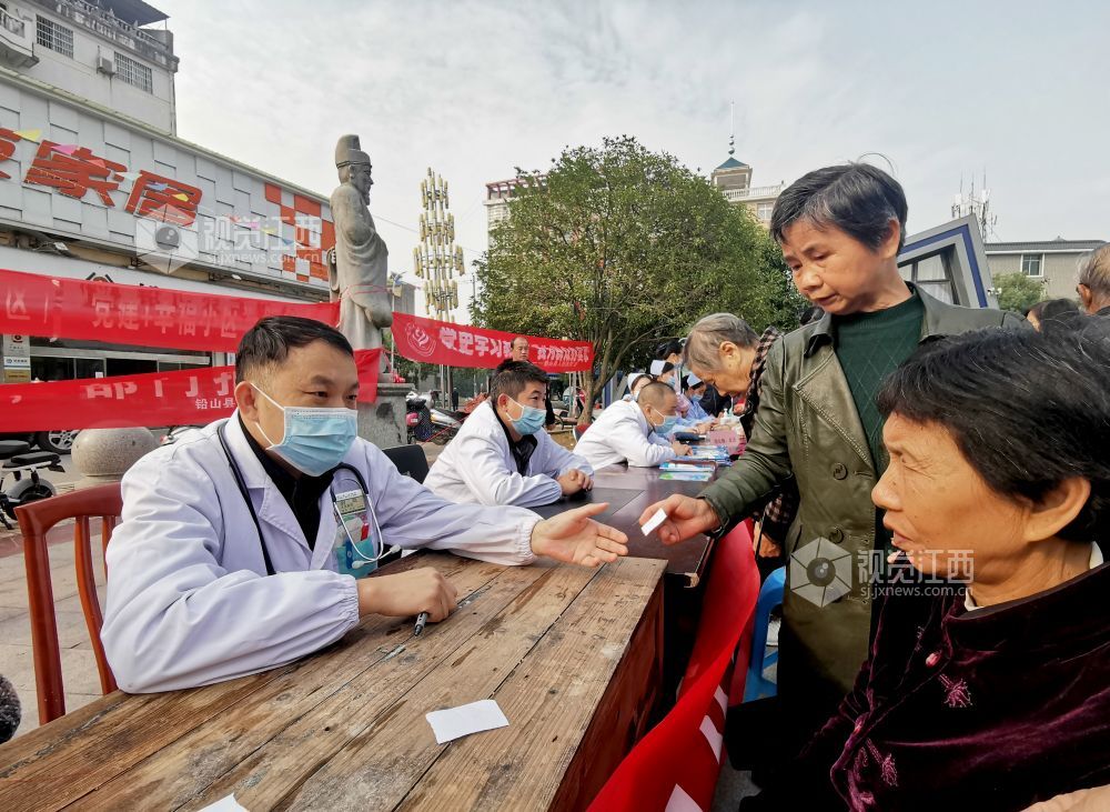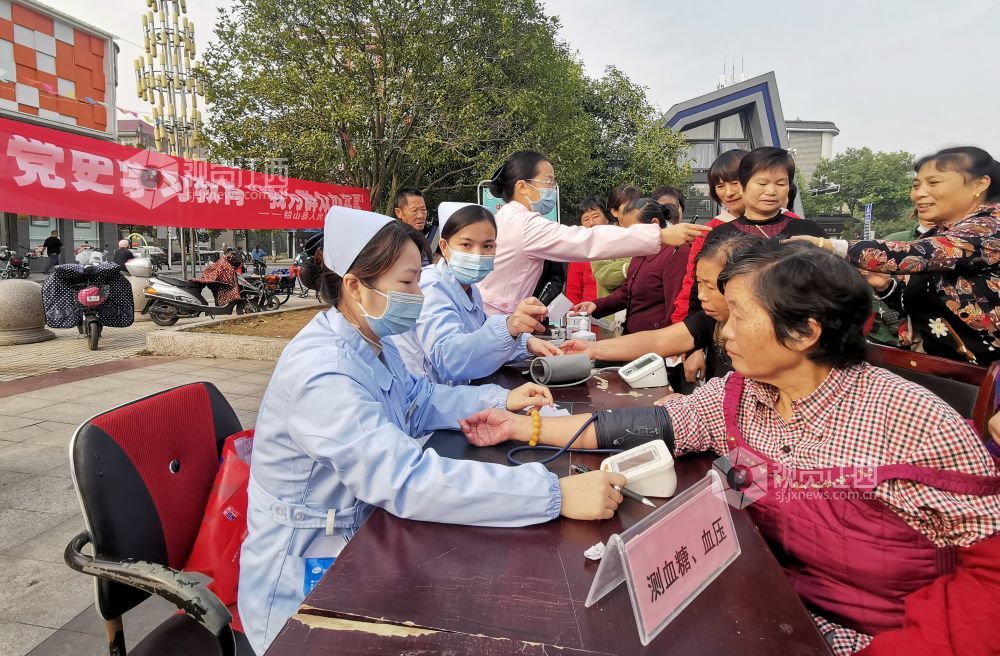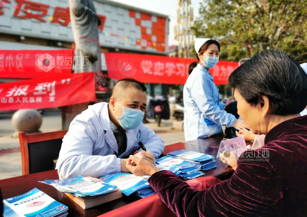 2021年10月29日,在江西省上饶市铅山县河口镇滨江花城,该县人民医院医生正在为群众义诊。为深入贯彻“学党史、悟思想、办实事、开新局”的党史学习教育要求,扎实开展“我为群众办实事”实践活动,去年以来,铅山县人民医院积极做好“党建+幸福小区”工作,每月到社区开展义诊活动,营造了传递真情、关爱健康的良好氛围。