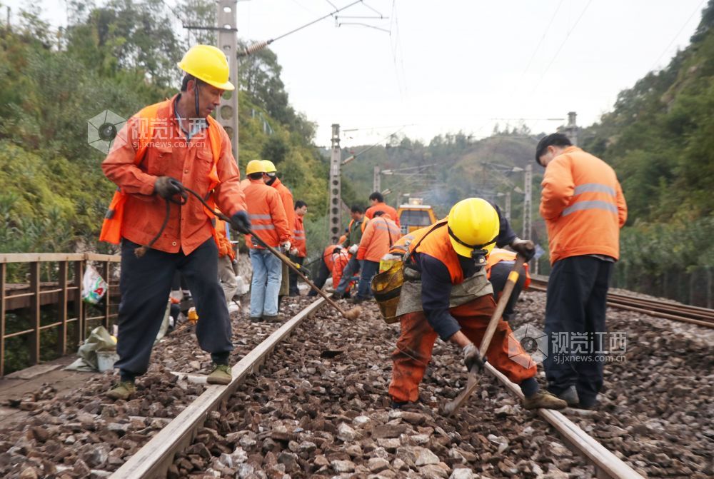 轨枕是承载钢轨与列车荷载的重要部件,为适应铁路安全高效的运输需求,保证列车安全运行。11月9日,中国铁路南昌局集团有限公司鹰潭工务机械段线路、机械大修三车间人在京九铁路江西兴国区段开展换枕施工作业。