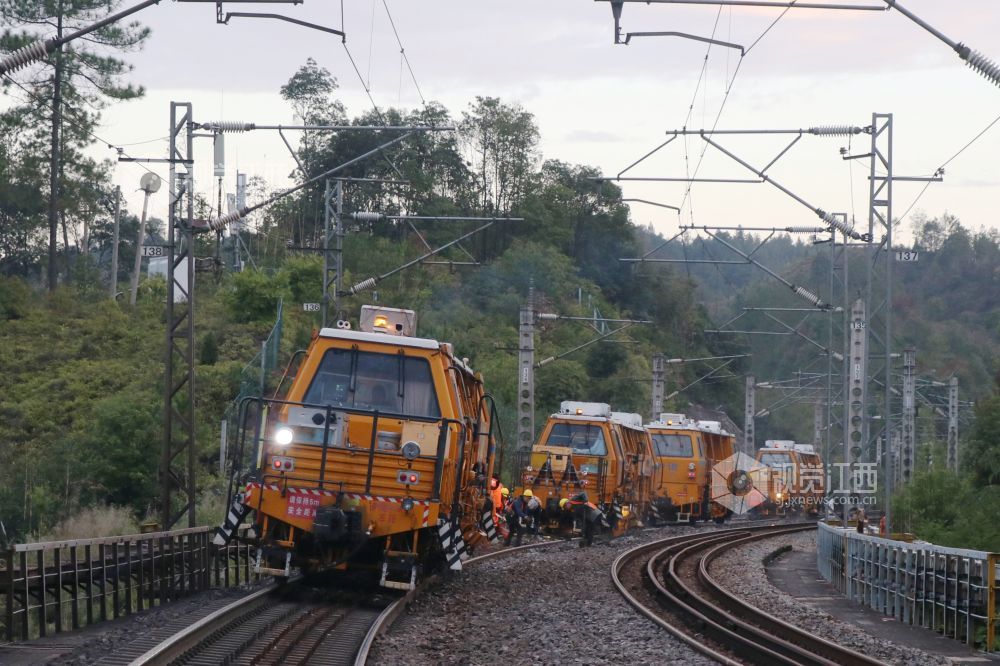 施工采用机械化作业方式,使用5台多功能作业车进行换枕施工,这也是该型号多功能作业车首次在铁路繁忙干线投入使用,当日共更换轨枕153根,进一步提升了线路的安全性和稳定性。