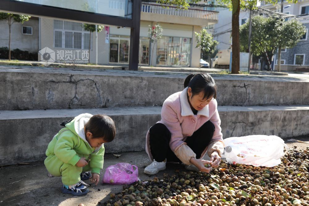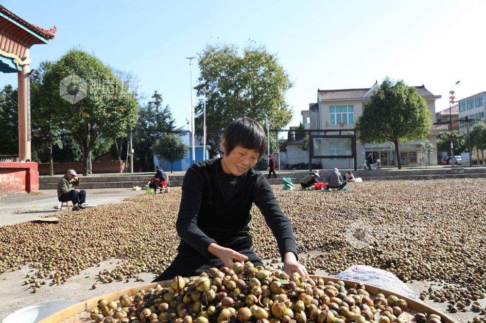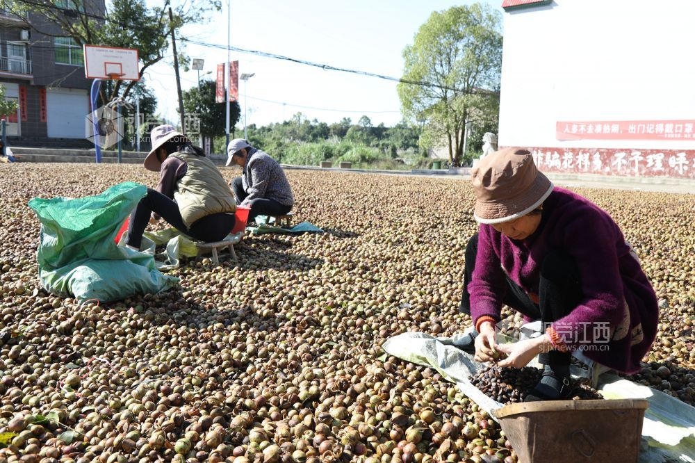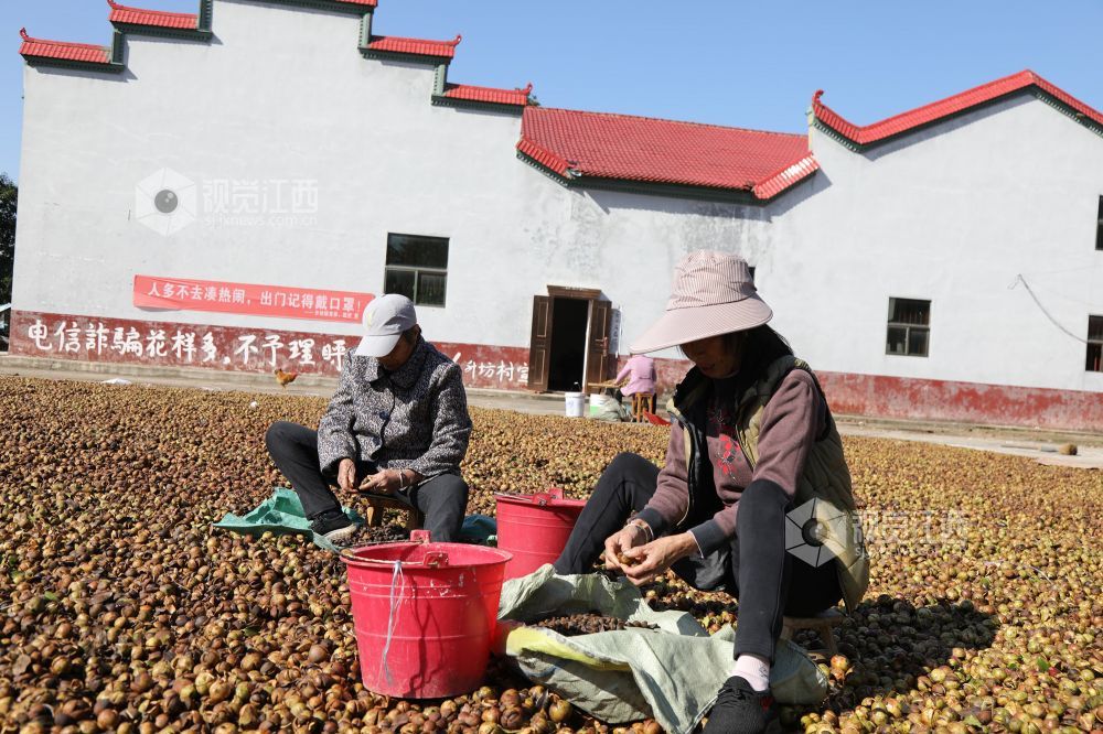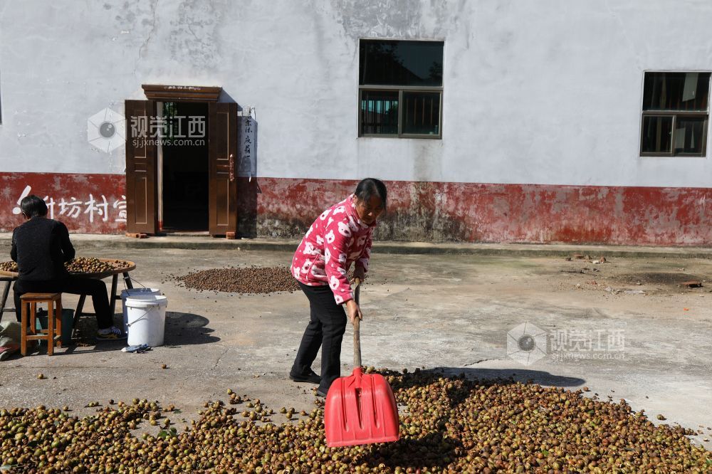 今年莲花县油茶大丰收,近几天天气晴好,村民忙着晾晒、分拣收获的油茶梓,到处是一片忙碌的景象。
