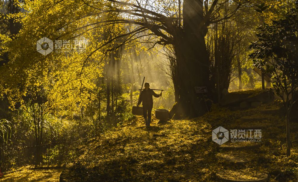 11月9日,在江西省永新县烟阁乡黄竹岭村(井冈山革命根据地第一位女红军贺子珍故里),一棵挺拔伟岸、虬枝苍劲的千年银杏,在冬日照耀下满树金黄,美不胜收。