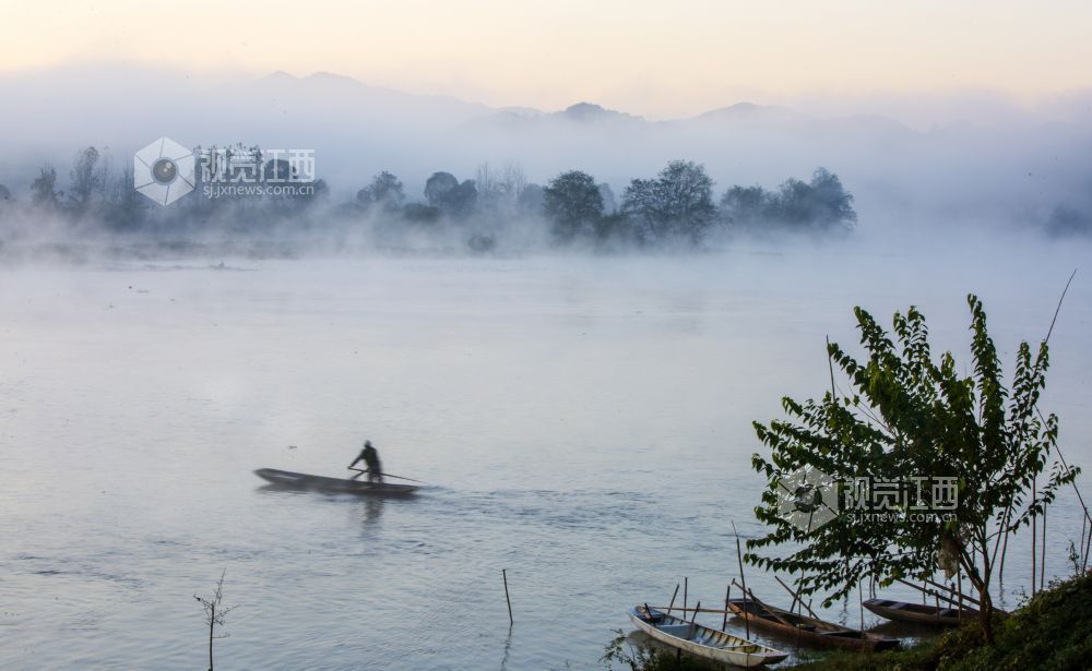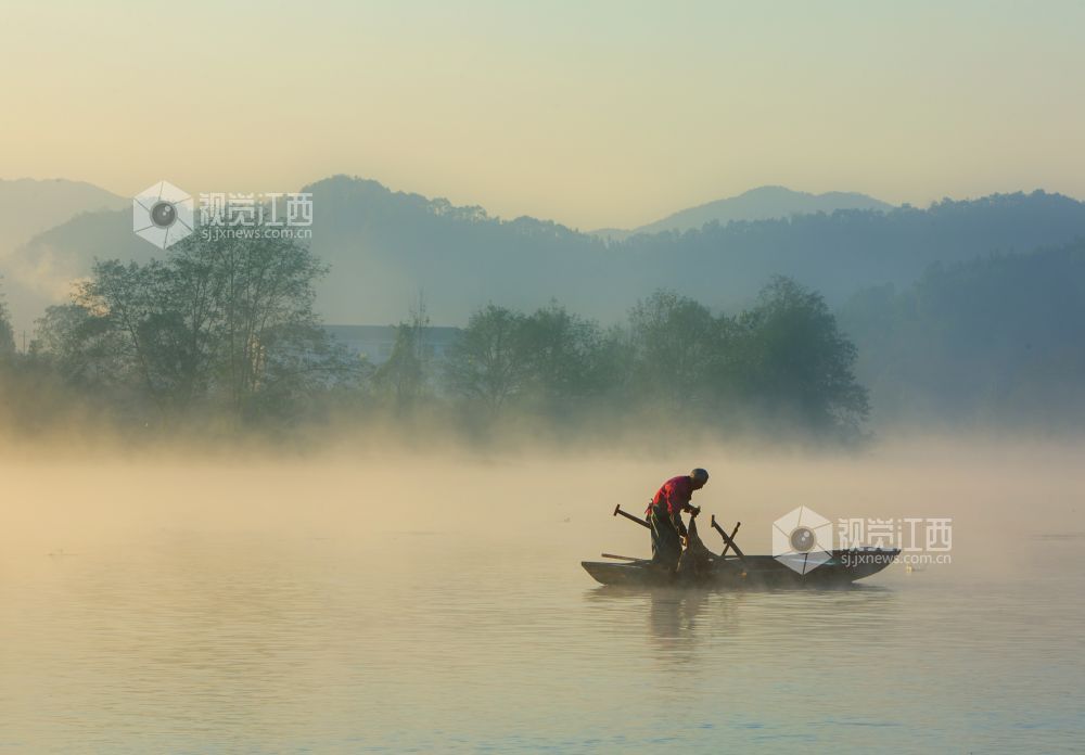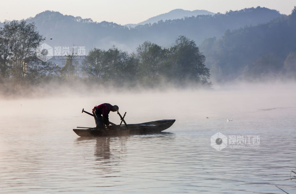 2021年11月10日,江西省新余市分宜县洋江镇杨溪河畔素有“分宜小东江”之称,立冬以来,气温骤降,早晚温差大,江面晨雾迷漫,烟雾缭绕,宛如仙境,吸引不少摄影爱好者前来拍摄。