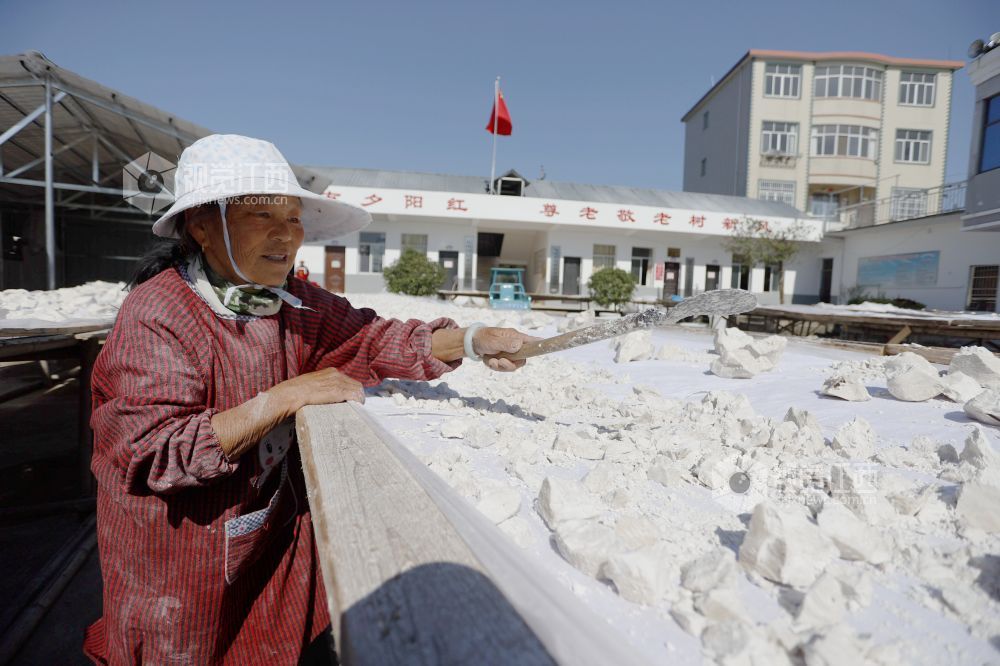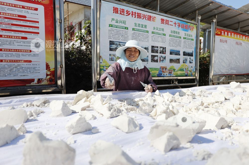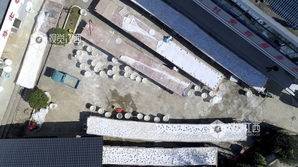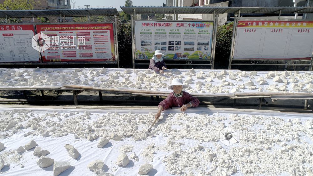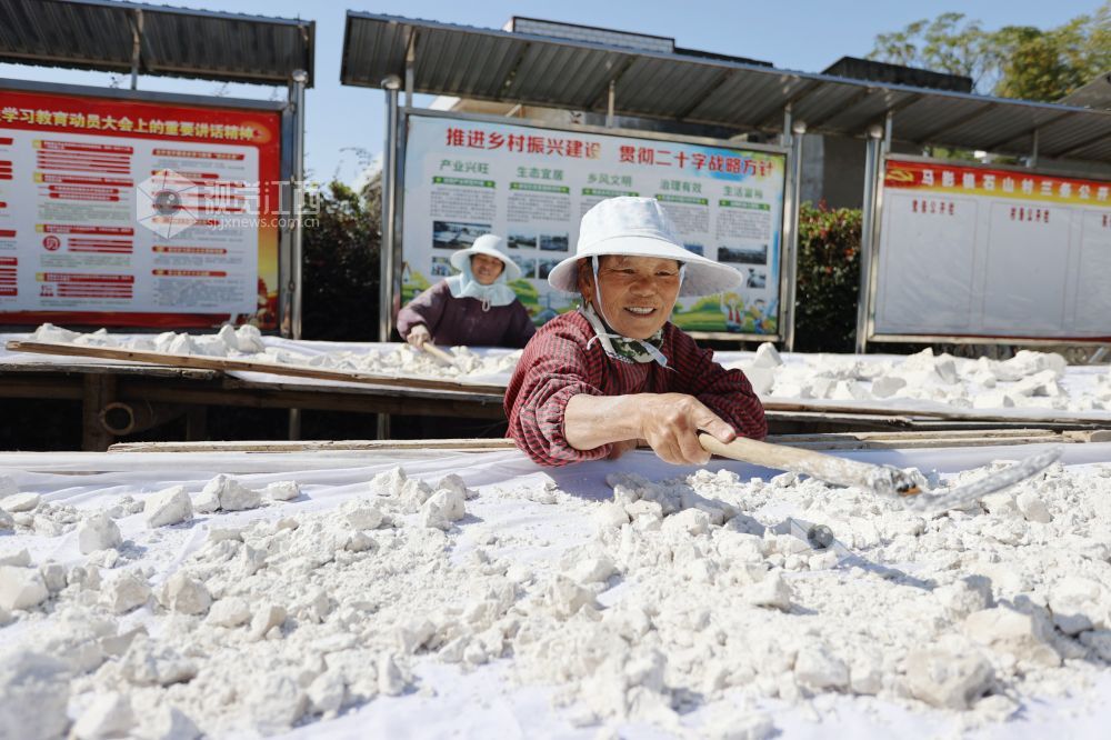 2021年11月10日,江西省九江市湖口县马影镇石山村股份经济合作社的村民抢抓晴好天气,忙着晾晒红薯粉。