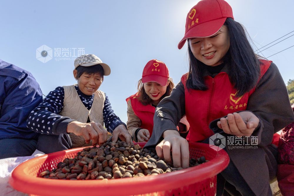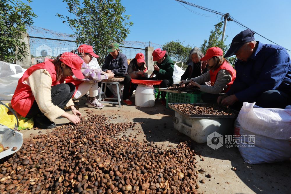 2021年11月10日,江西庐山市华林镇虎口冲村2000亩油茶喜获丰收。 当地把产业兴旺作为实施乡村振兴战略的重要抓手,引进农业实用人才、扶持龙头企业、建立专业合作社、流转荒山等措施不断壮大产业、扩大就业,促使农业增产、农民增收。