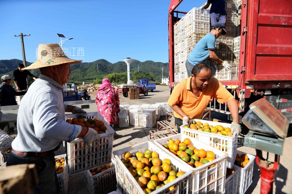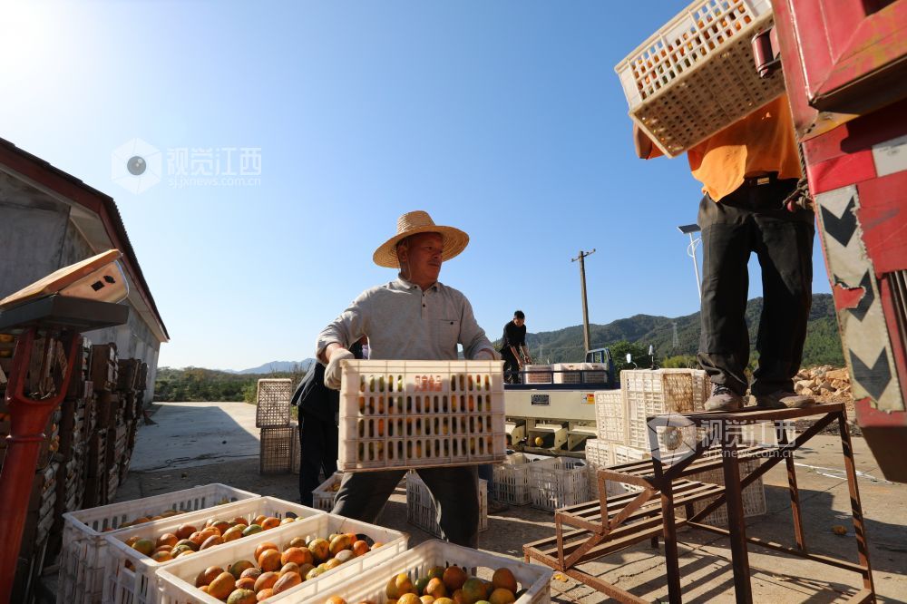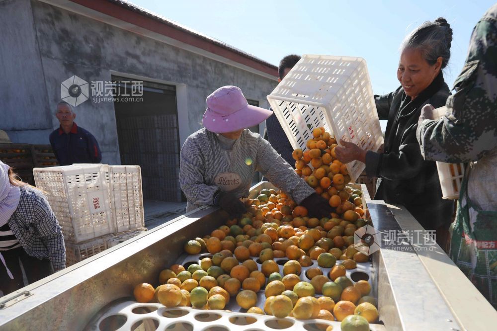 2021年11月10日,在江西省吉安市峡江县金坪民族乡新民村,果农分拣成熟橘子供市场。
