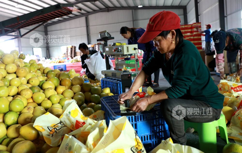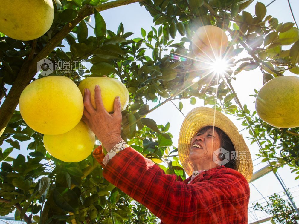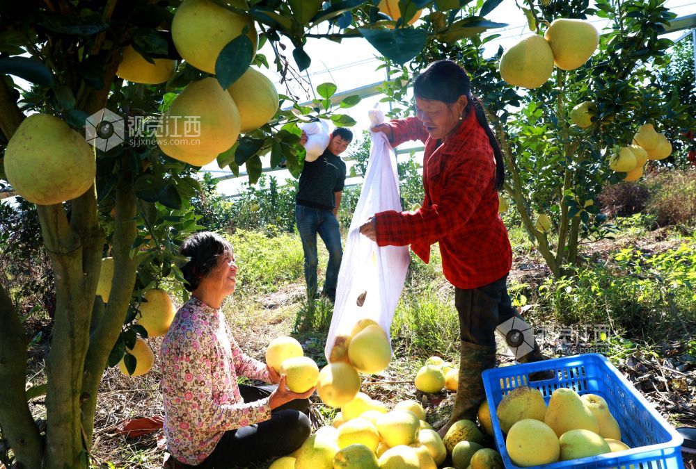 眼下,立冬已过,寒意渐浓,江西省永新县高市乡八团村庆丰农业蜜柚种植基地的5000多亩蜜柚进入集中采摘期。