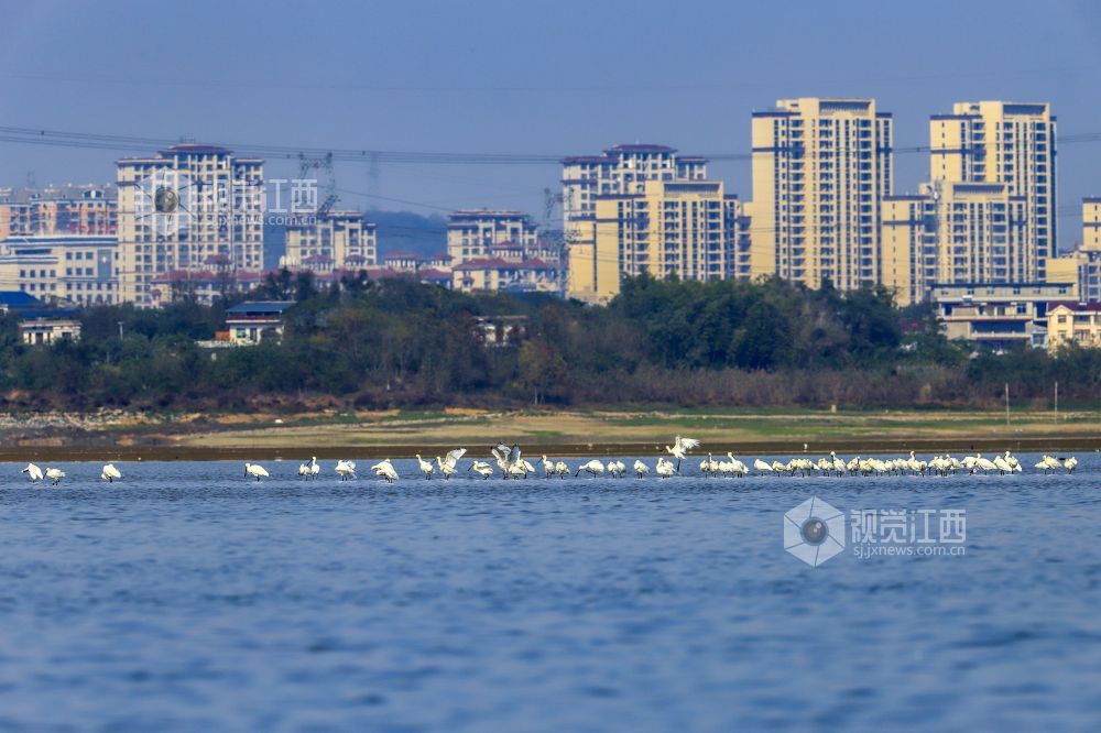 江西湖口:候鸟集结鄱阳湖越冬
